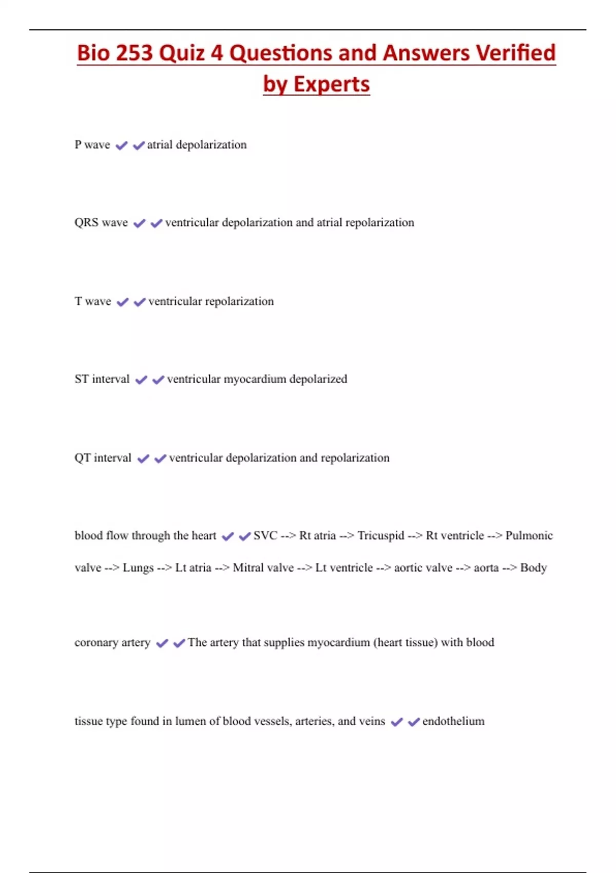 Bio 253 Quiz 4 Questions and Answers Verified