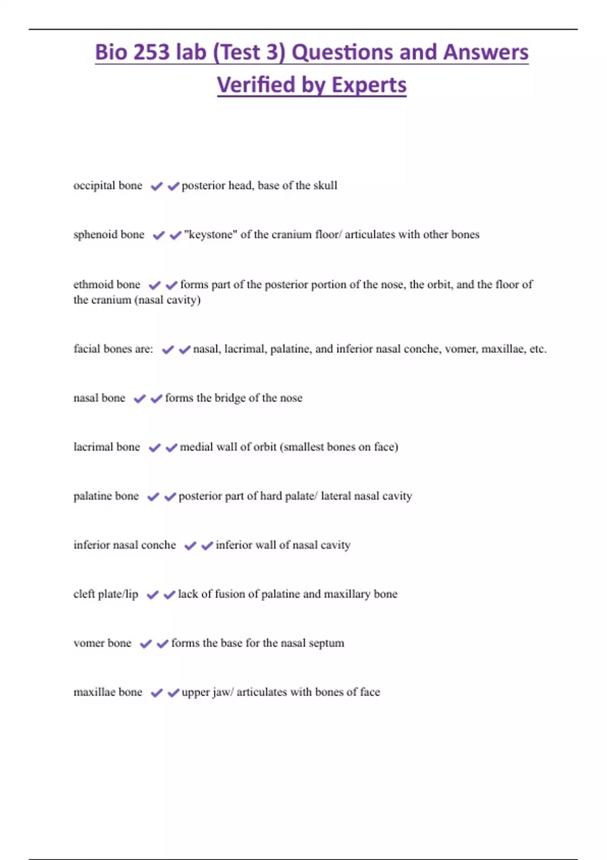 Bio 253 lab (Test 3) Questions and Answers Verified by Experts
