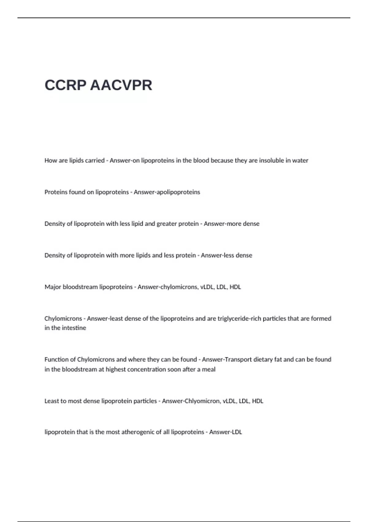 Density of lipoprotein with more lipids and less protein - Answer-less dense