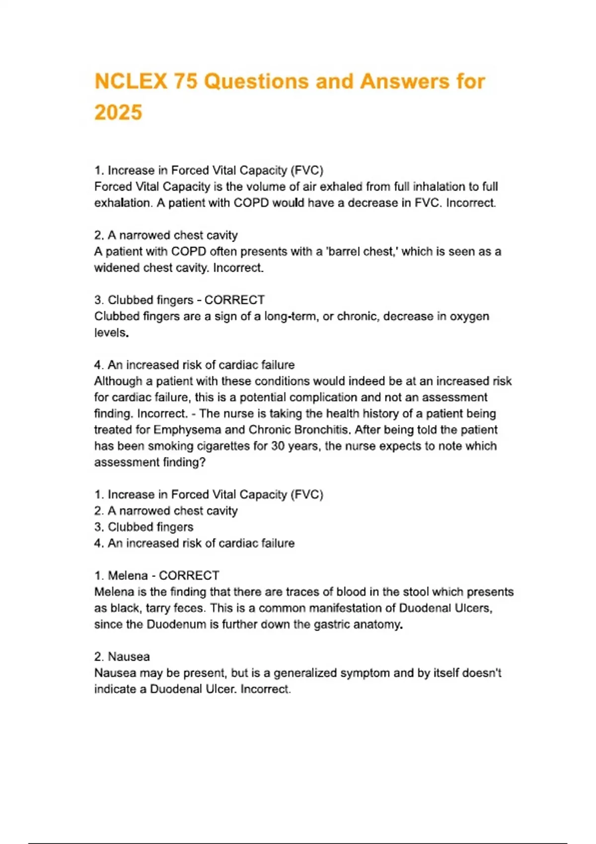 NCLEX LATEST VERSION 75 questions with answers