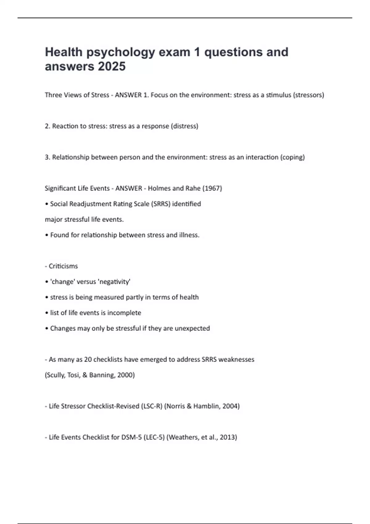 Significant Life Events - ANSWER - Holmes and Rahe (1967)