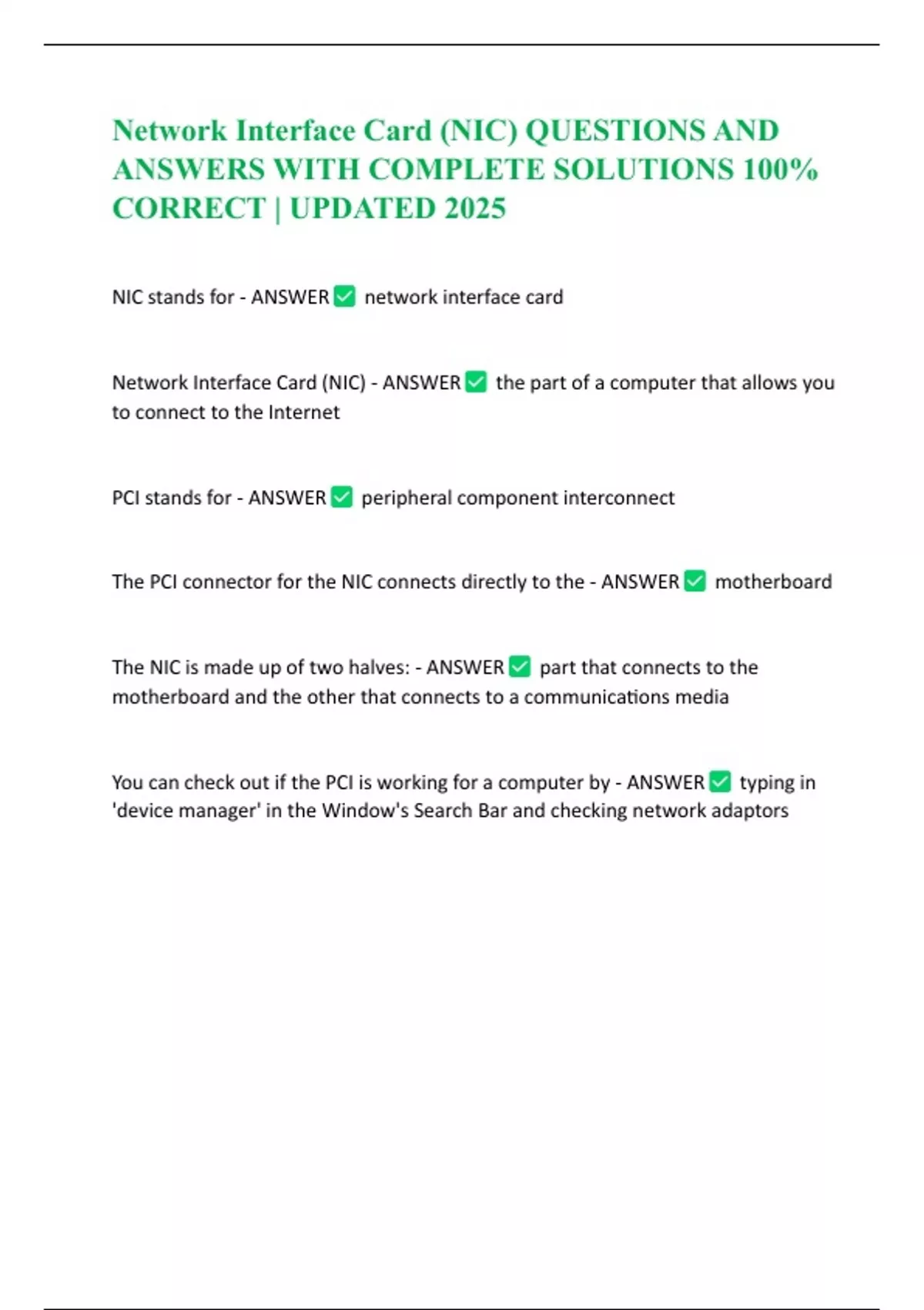 Network Interface Card (NIC) QUESTIONS AND