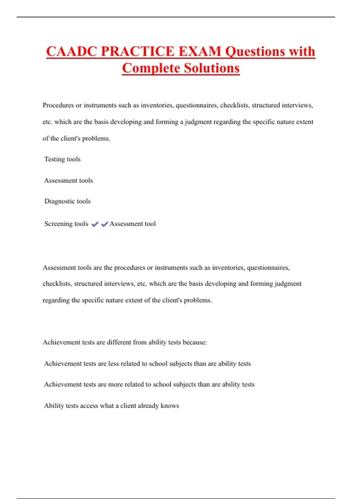 Assessment tools are the procedures or instruments such as inventories, questionnaires,