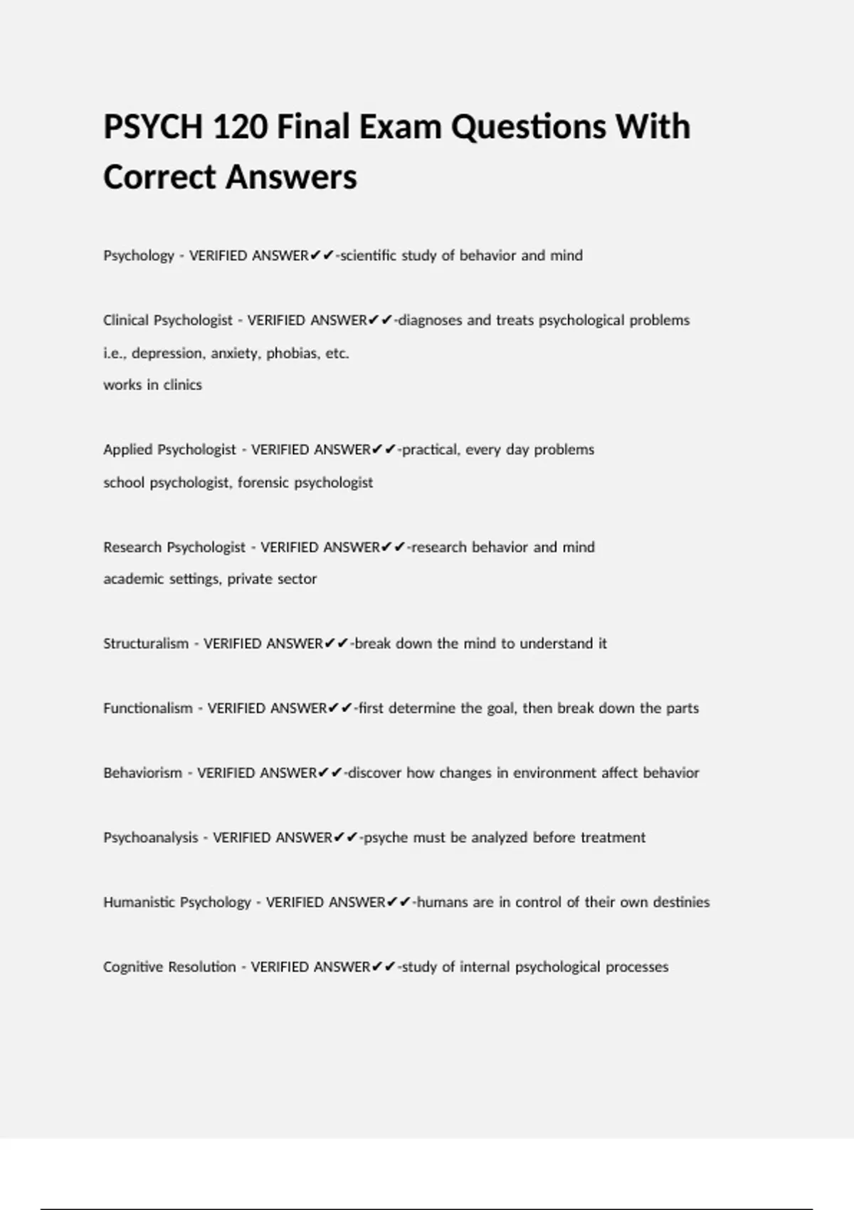 PSYCH 120 Final Exam Questions With