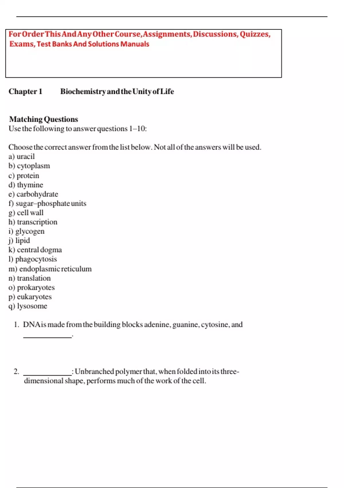 Test Bank for Biochemistry: A Short Course Third Edition by John L. Tymoczko ISBN 9781464126130 Chapter 1-41 | Complete Guide A+