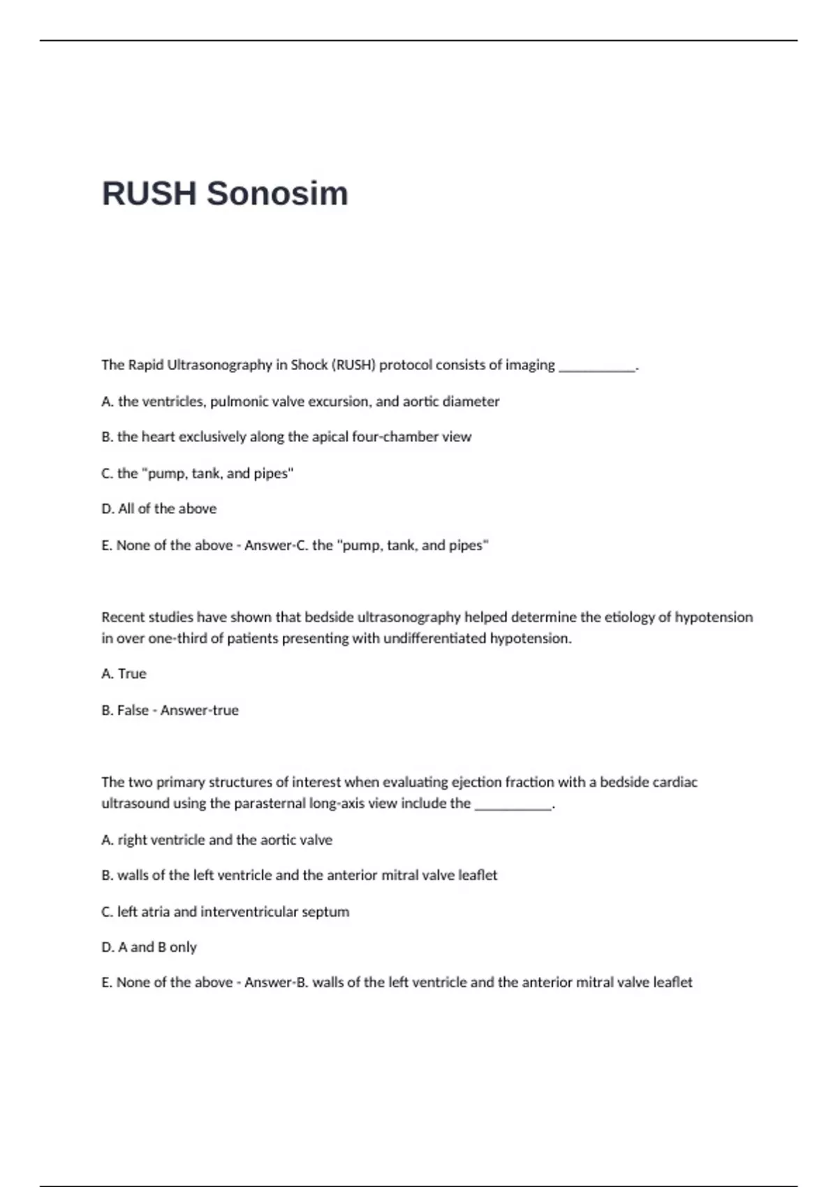 RUSH SONOSIM TEST QUESTIONS WITH 100% CORRECT ANSWERS |VERIFIED!!!!