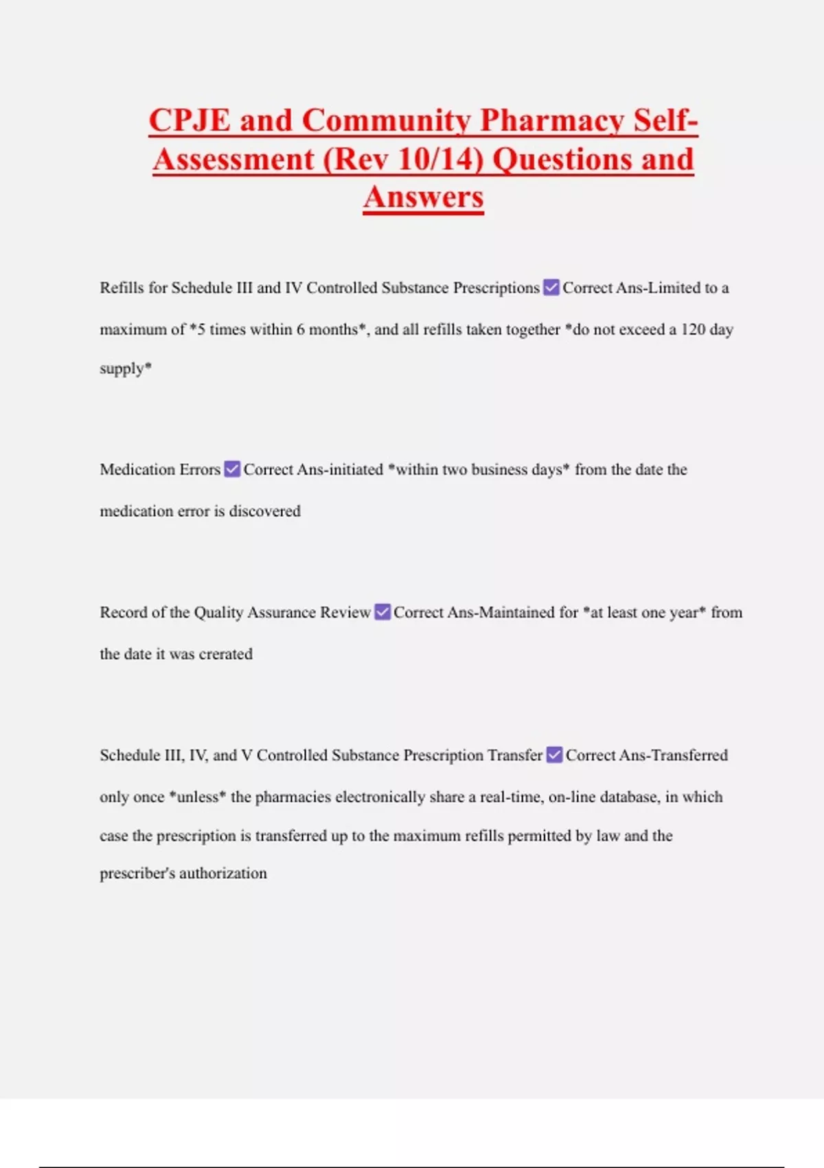CPJE and Community Pharmacy SelfAssessment (Rev 10/14) Questions and Answers