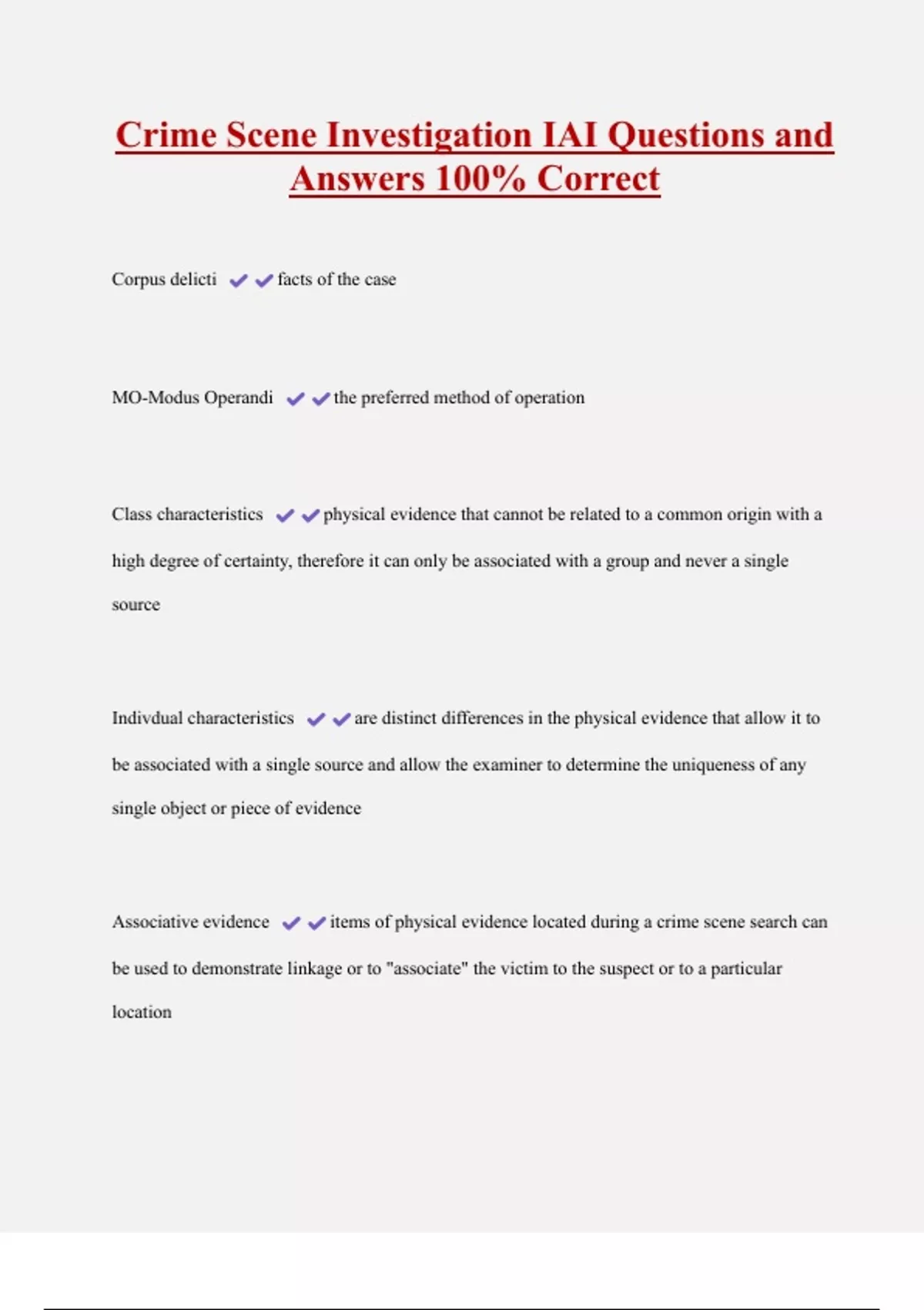 Indivdual characteristics are distinct differences in the physical evidence that allow it to
