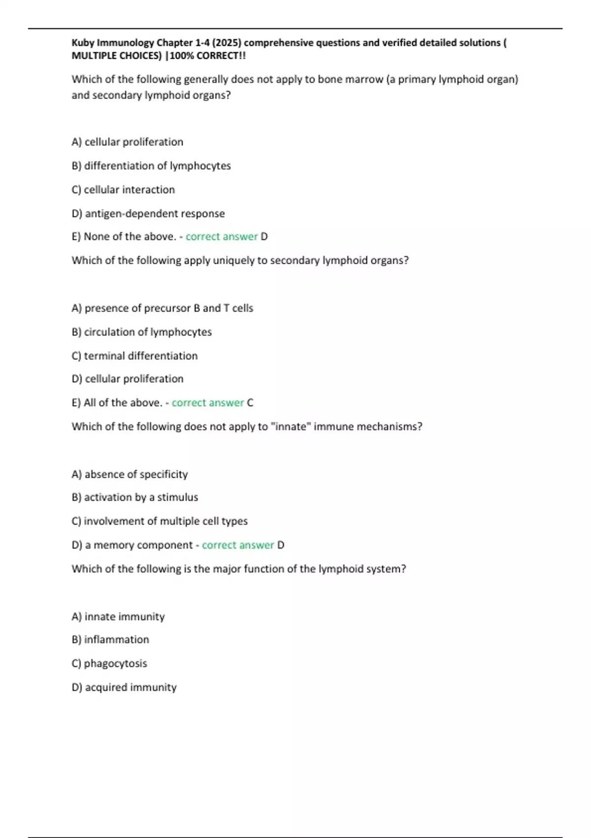 Kuby Immunology Chapter 1-4 (2025) comprehensive questions and verified detailed solutions ( MULTIPLE CHOICES) |100% CORRECT!!/Kuby Immunology Chapter 1-4 (2025) comprehensive questions and verified detailed solutions ( MULTIPLE CHOICES) |100% CORRECT!!/Kuby Immunology Chapter 1-4 (2025) comprehensive questions and verified detailed solutions ( MULTIPLE CHOICES) |100% CORRECT!!