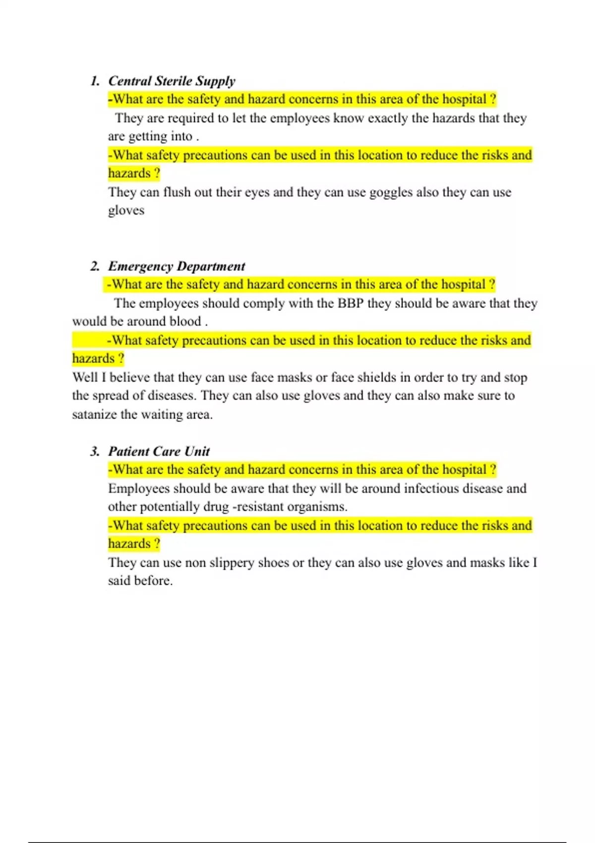 -What are the safety and hazard concerns in this area of the hospital ? ​