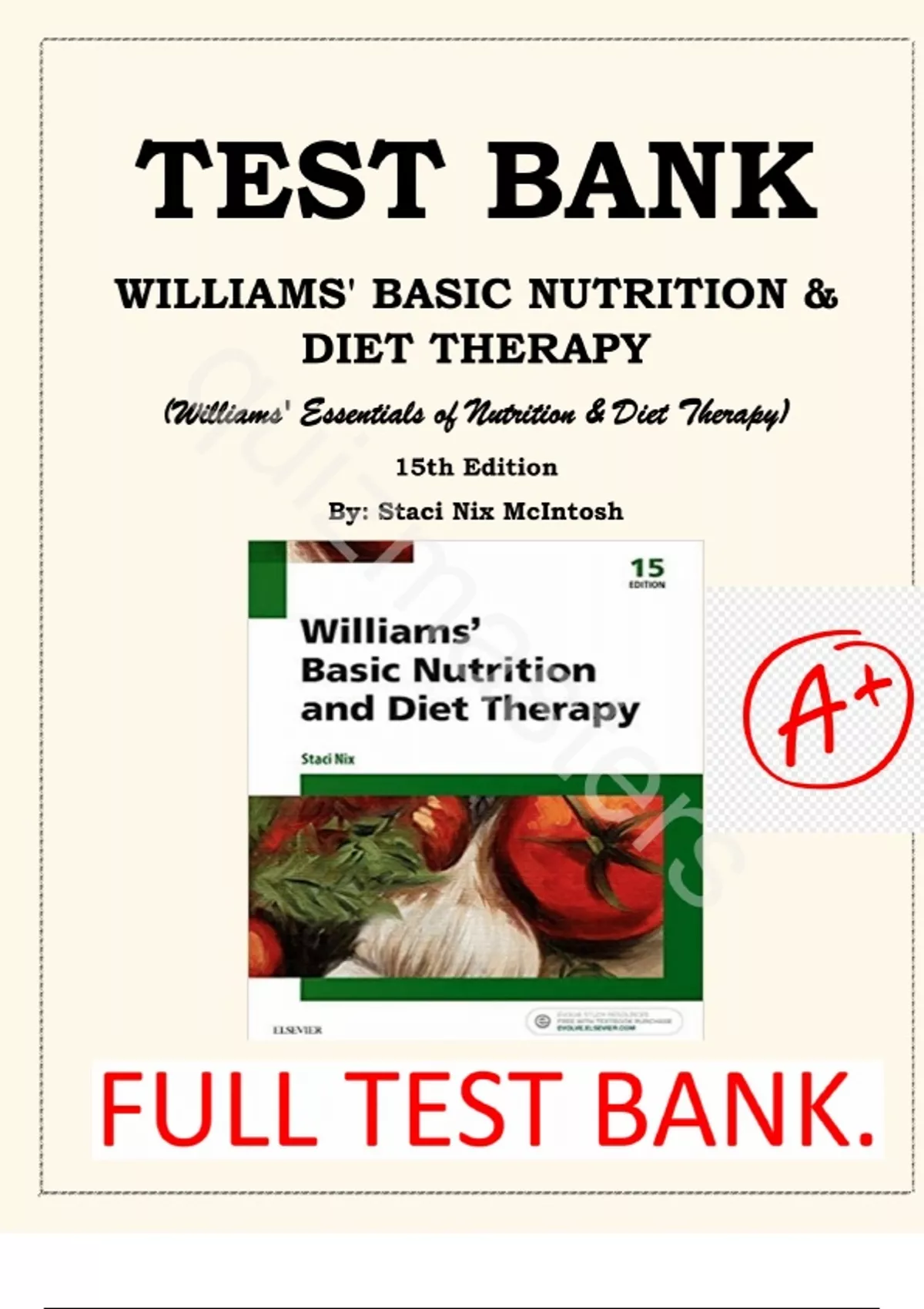 Test Bank for Williams Basic Nutrition and Diet Therapy 15th Edition Staci Nix All Chapters 1-23 included.LATEST UPDATED VERSION.