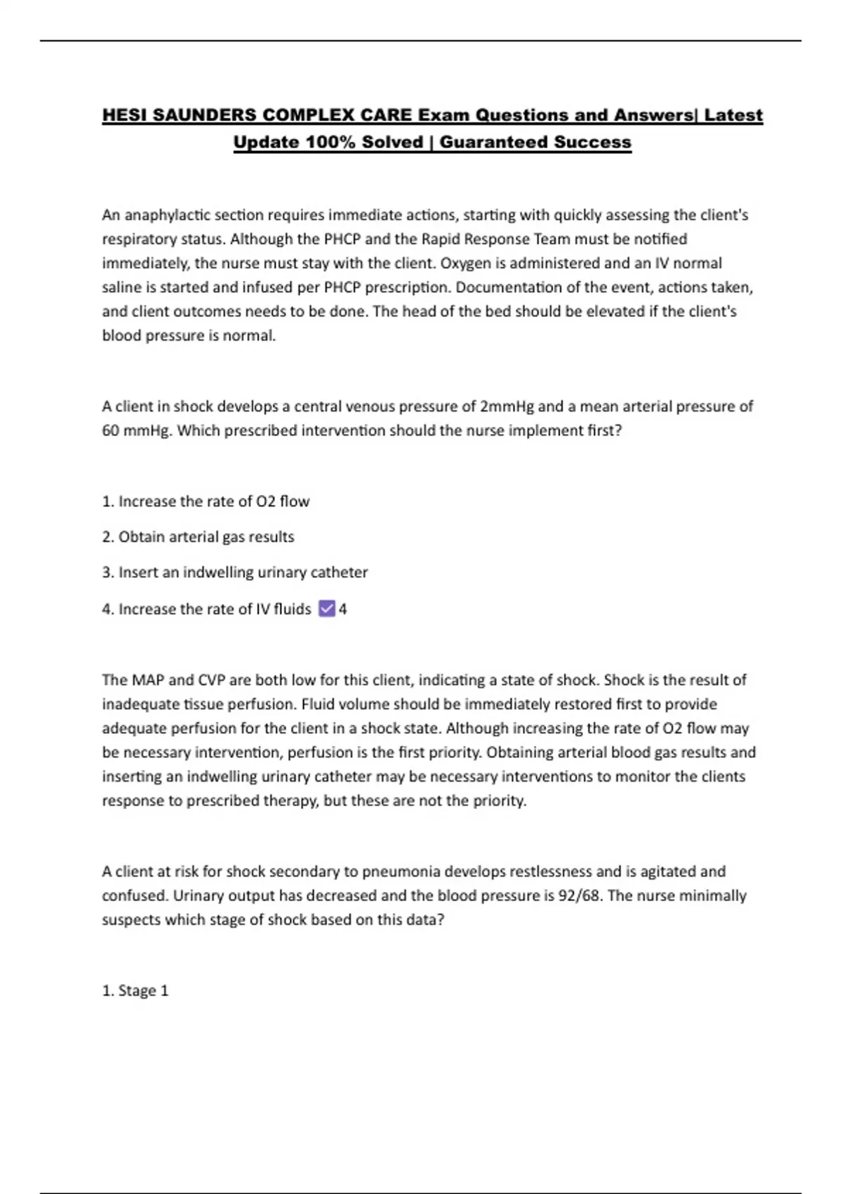 adequate perfusion for the client in a shock state. Although increasing the rate of O2 flow may