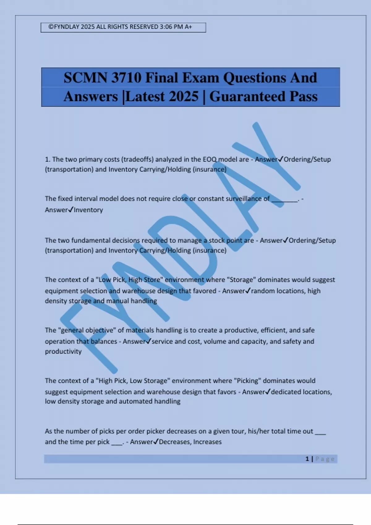1. The two primary costs (tradeoffs) analyzed in the EOQ model are - Answer✔Ordering/Setup