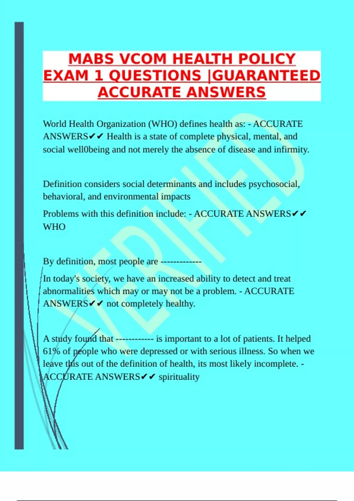 ANSWERS✔✔ Health is a state of complete physical, mental, and