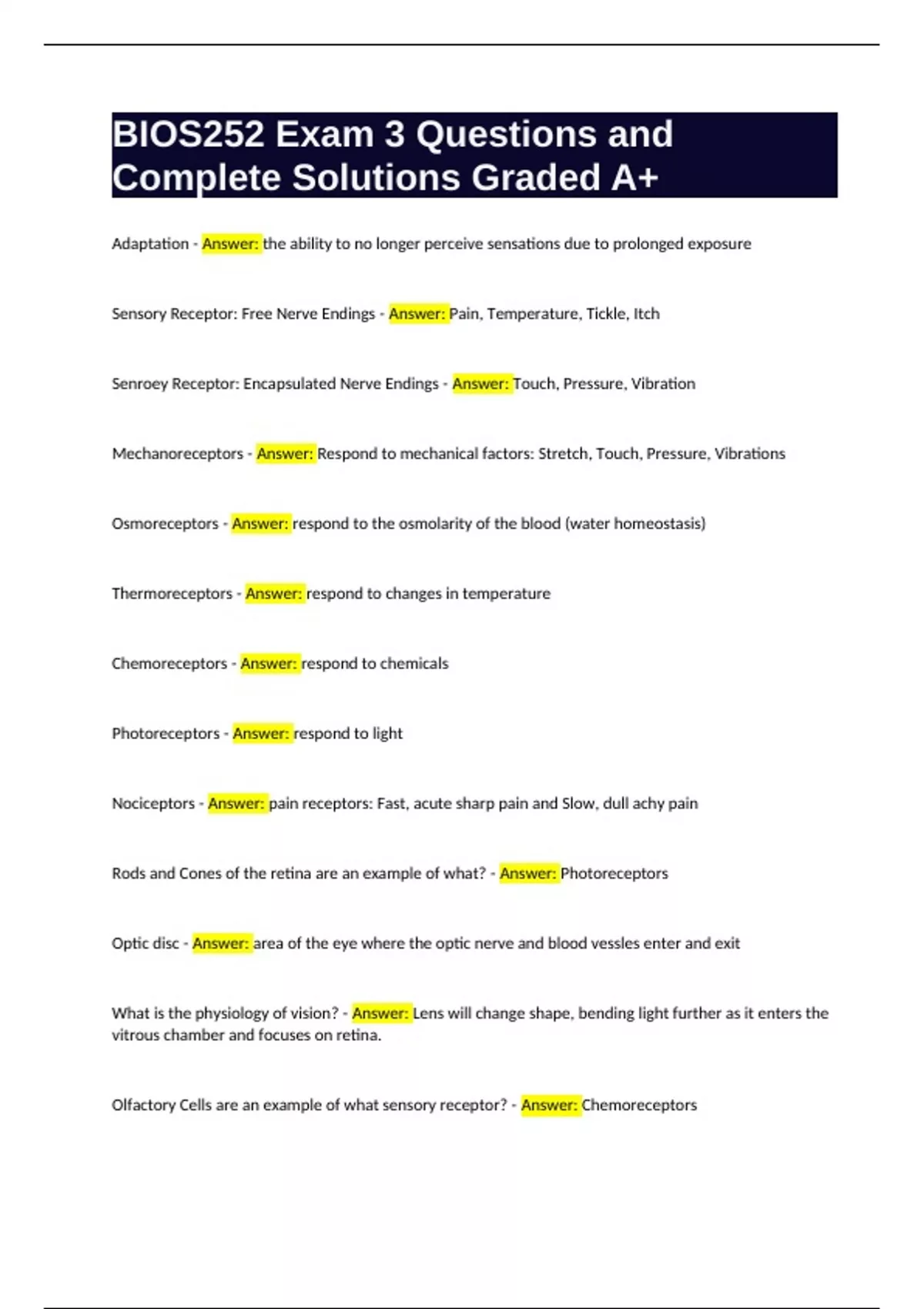 Sensory Receptor: Free Nerve Endings - Answer: Pain, Temperature, Tickle, Itch
