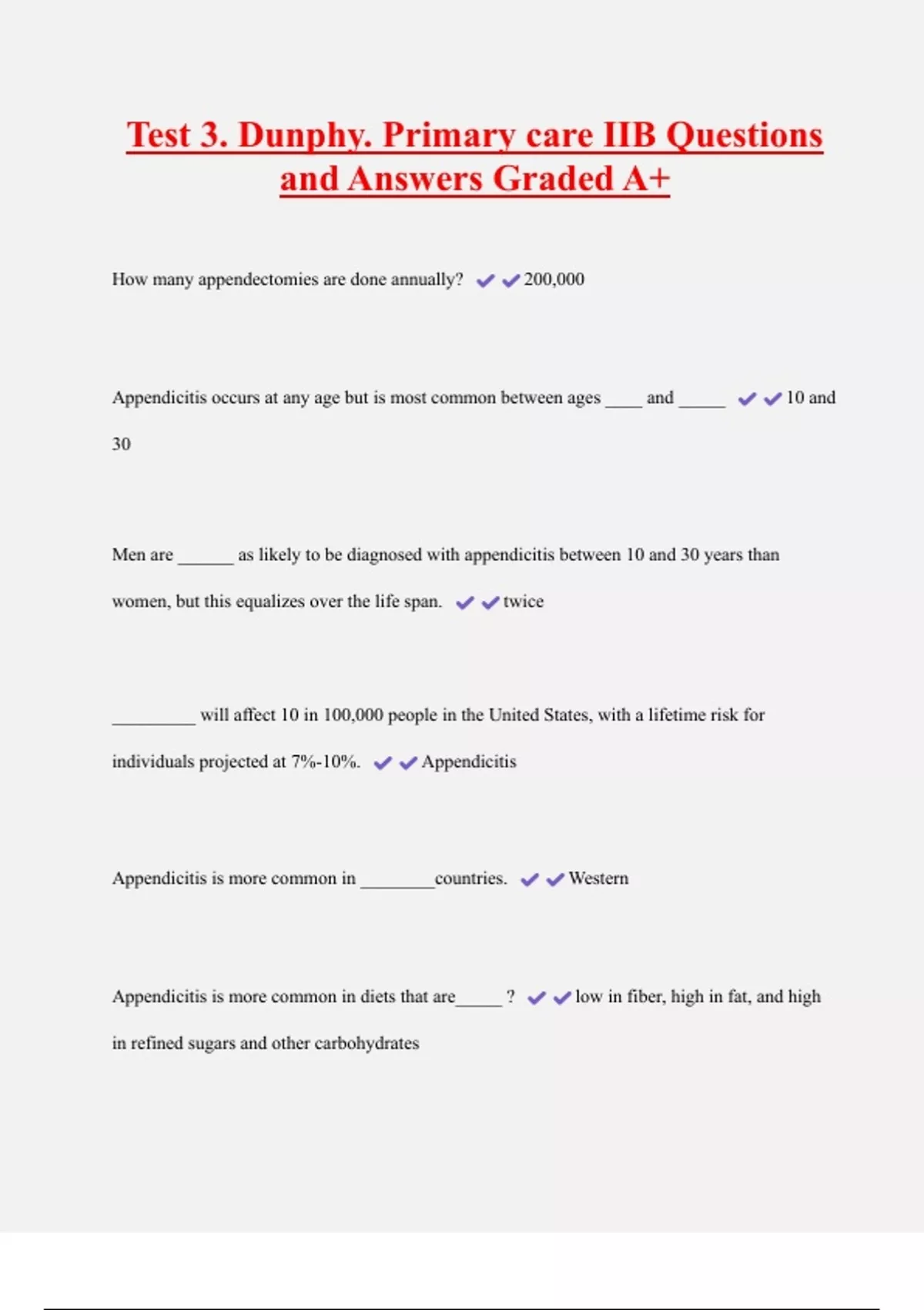 Test 3. Dunphy. Primary care IIB Questions and Answers Graded A+