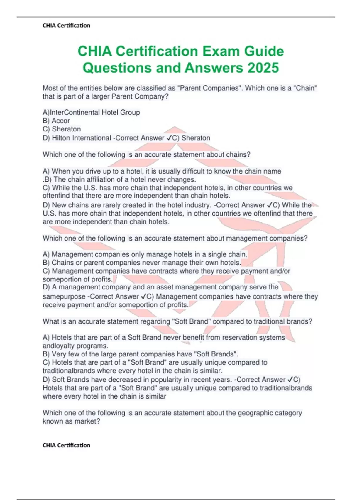 inthe world -Correct Answer ✔D) Every hotel in a single chain will be in the same scale