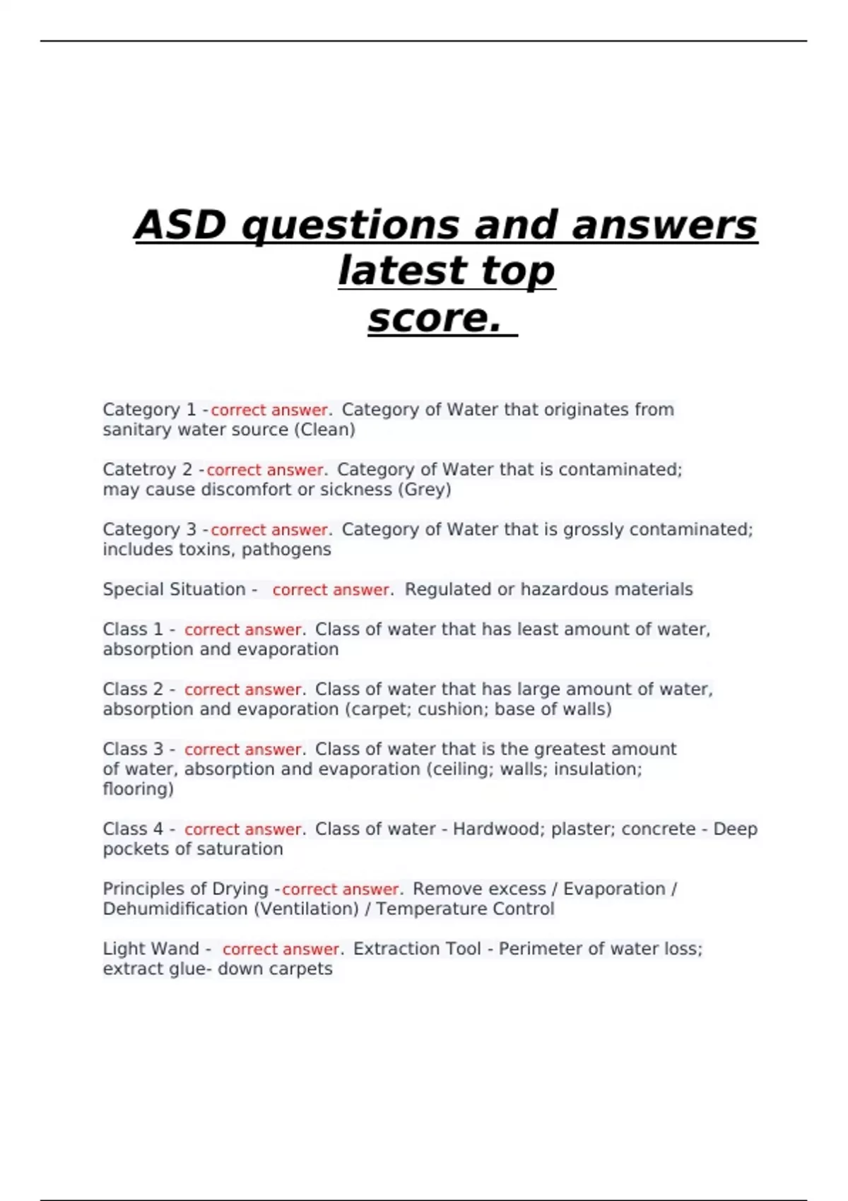 Category 1 - correct answer. Category of Water that originates from