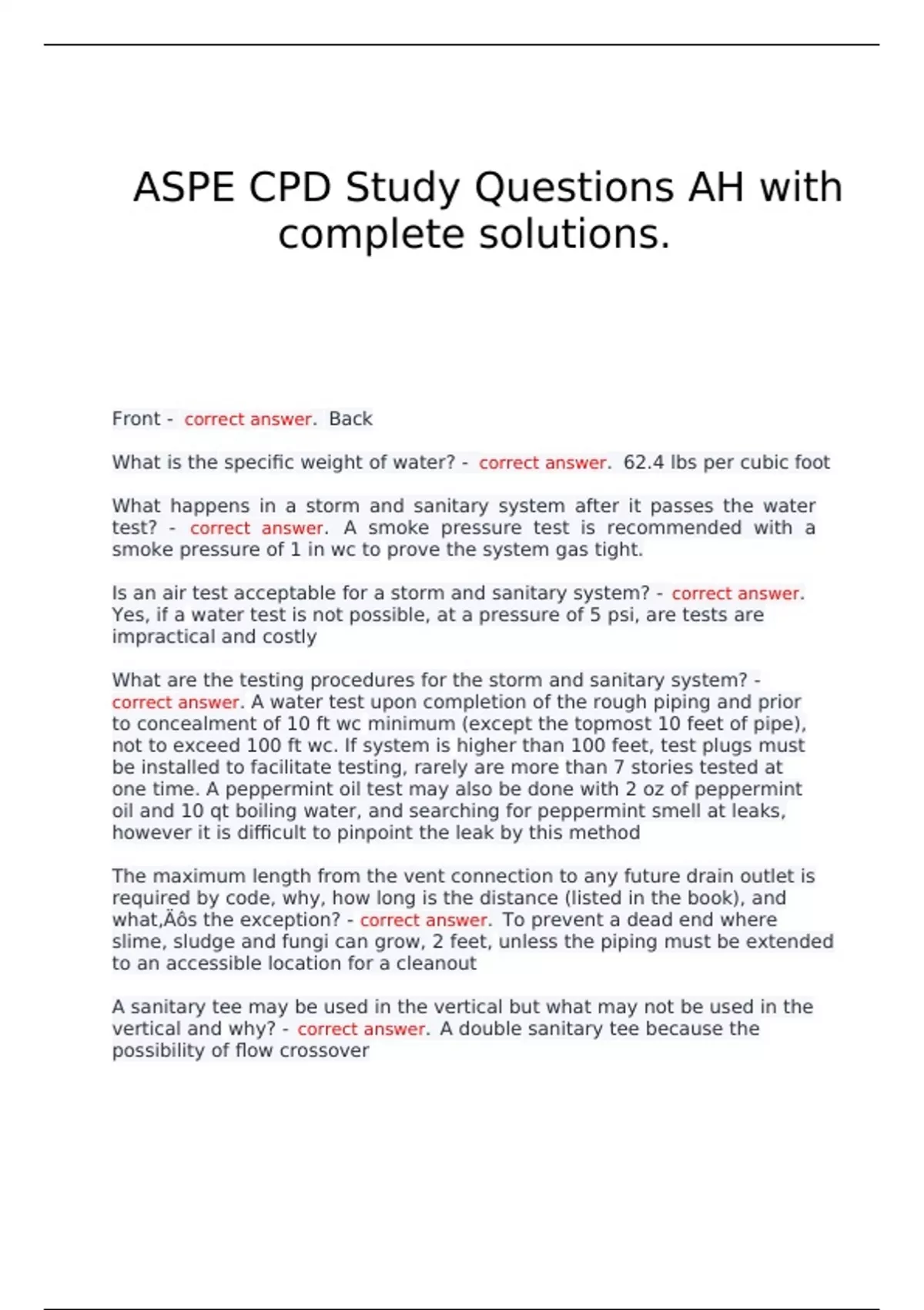 ASPE CPD Study Questions AH with complete solutions.