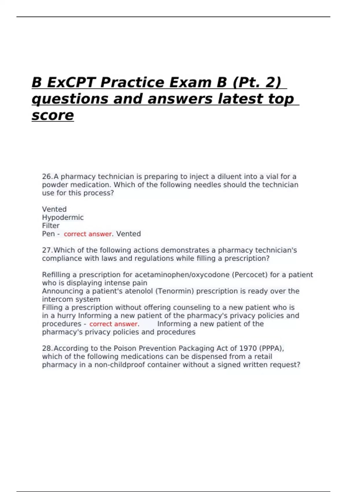 B ExCPT Practice Exam B (Pt. 2) questions and answers latest top score