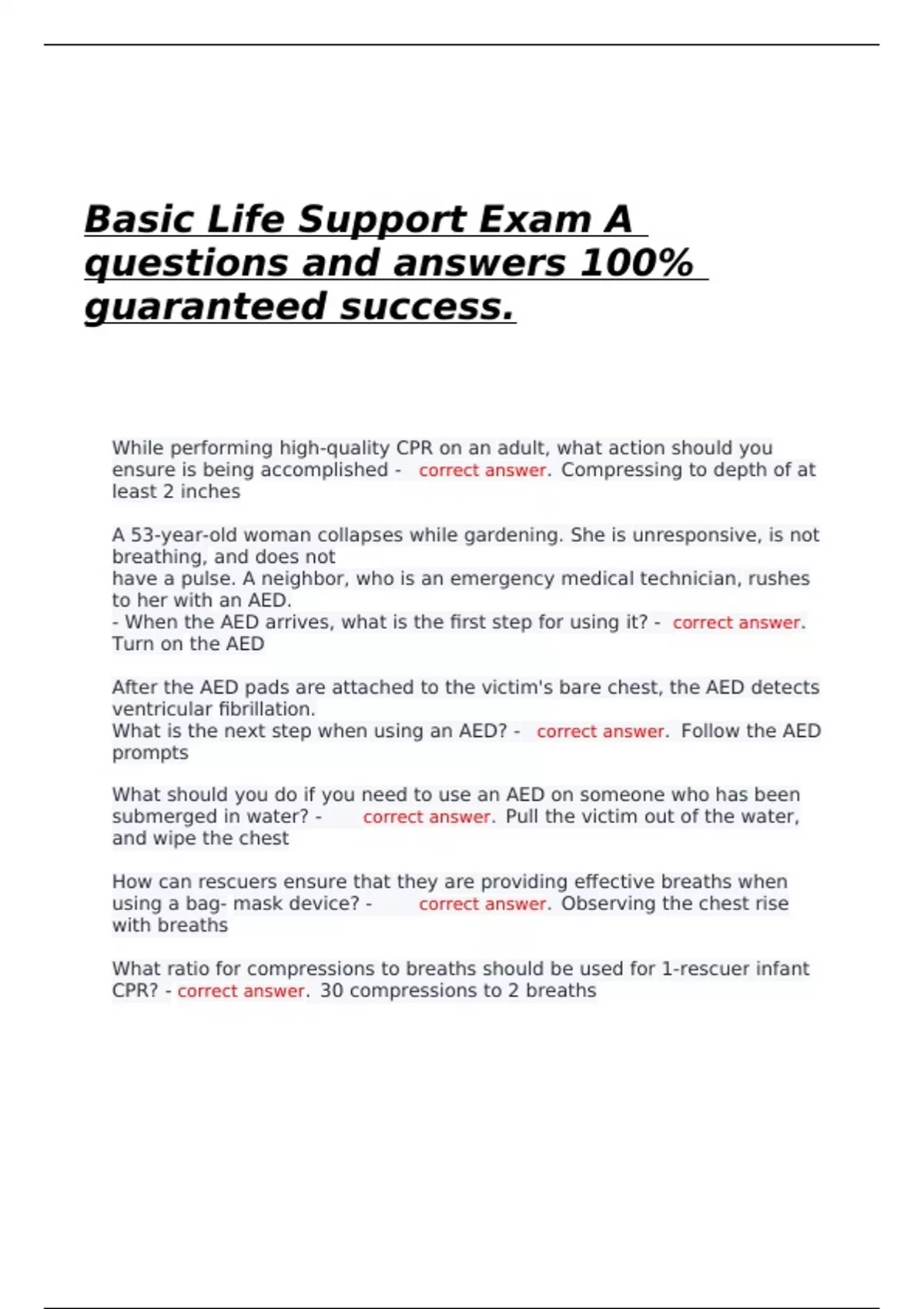 CPR? - correct answer. 30 compressions to 2 breaths