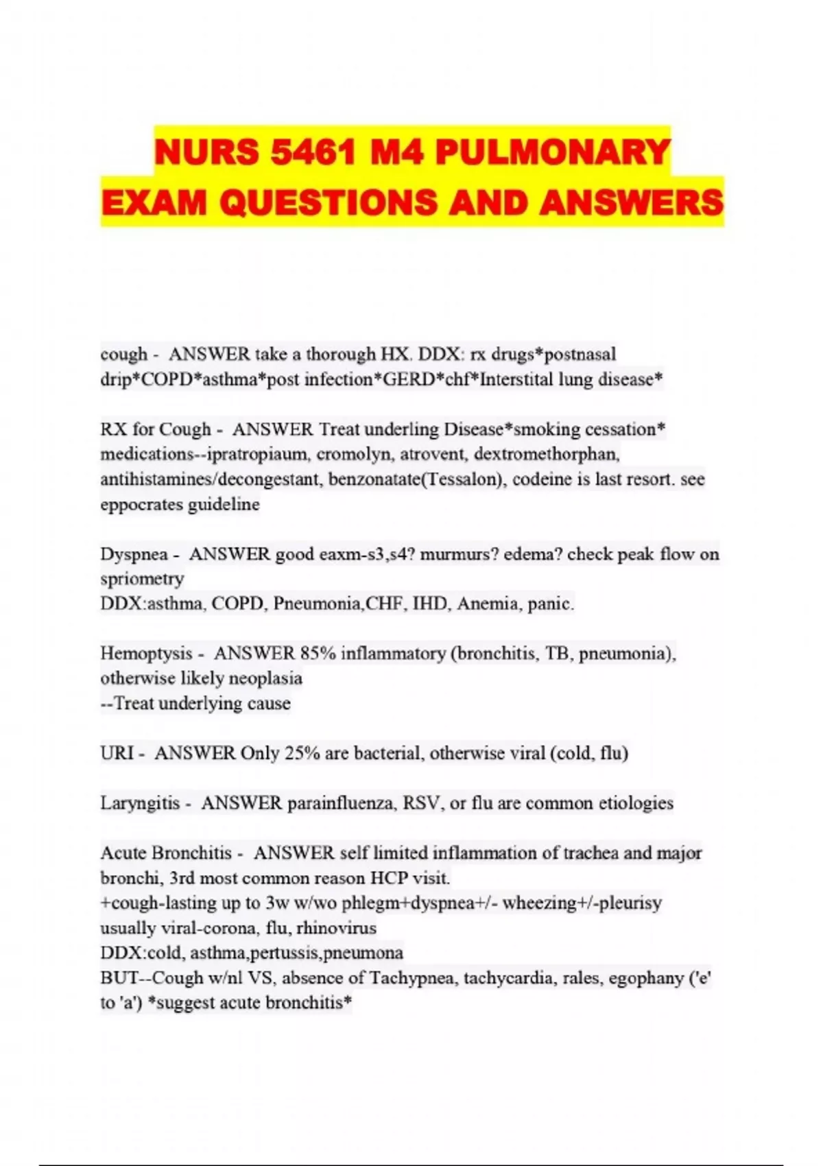 NURS 5461 M4 PULMONARY EXAM QUESTIONS AND ANSWERS