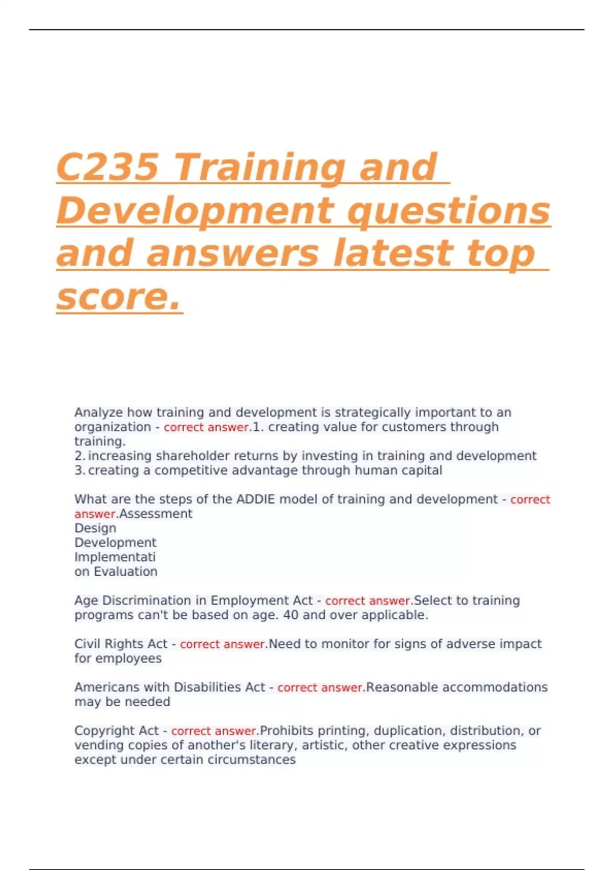 C235 Training and Development questions and answers latest top score.