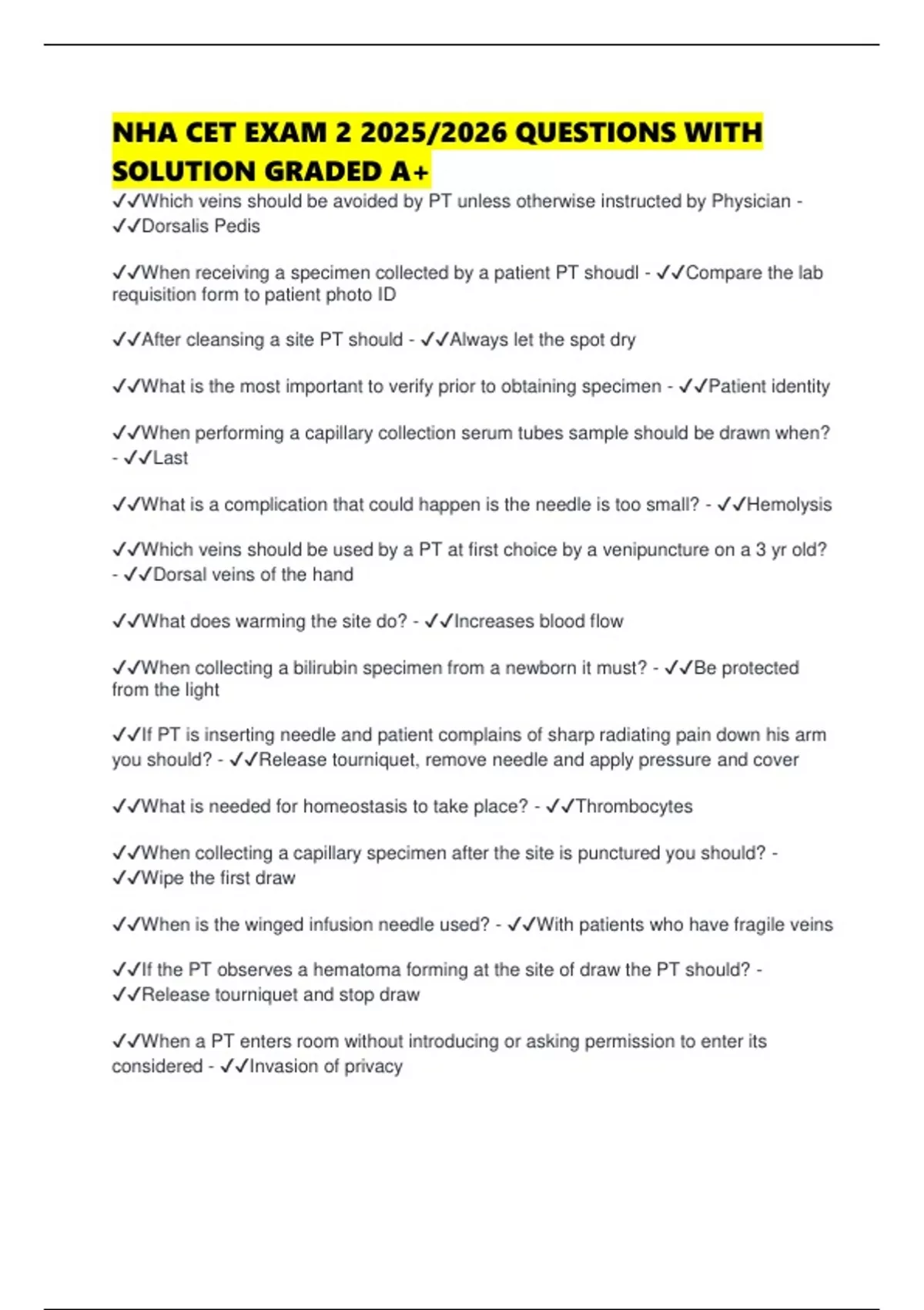 NHA CET EXAM 2 TEST 2025/2026 QUESTIONS WITH SOLUTION GRADED A+