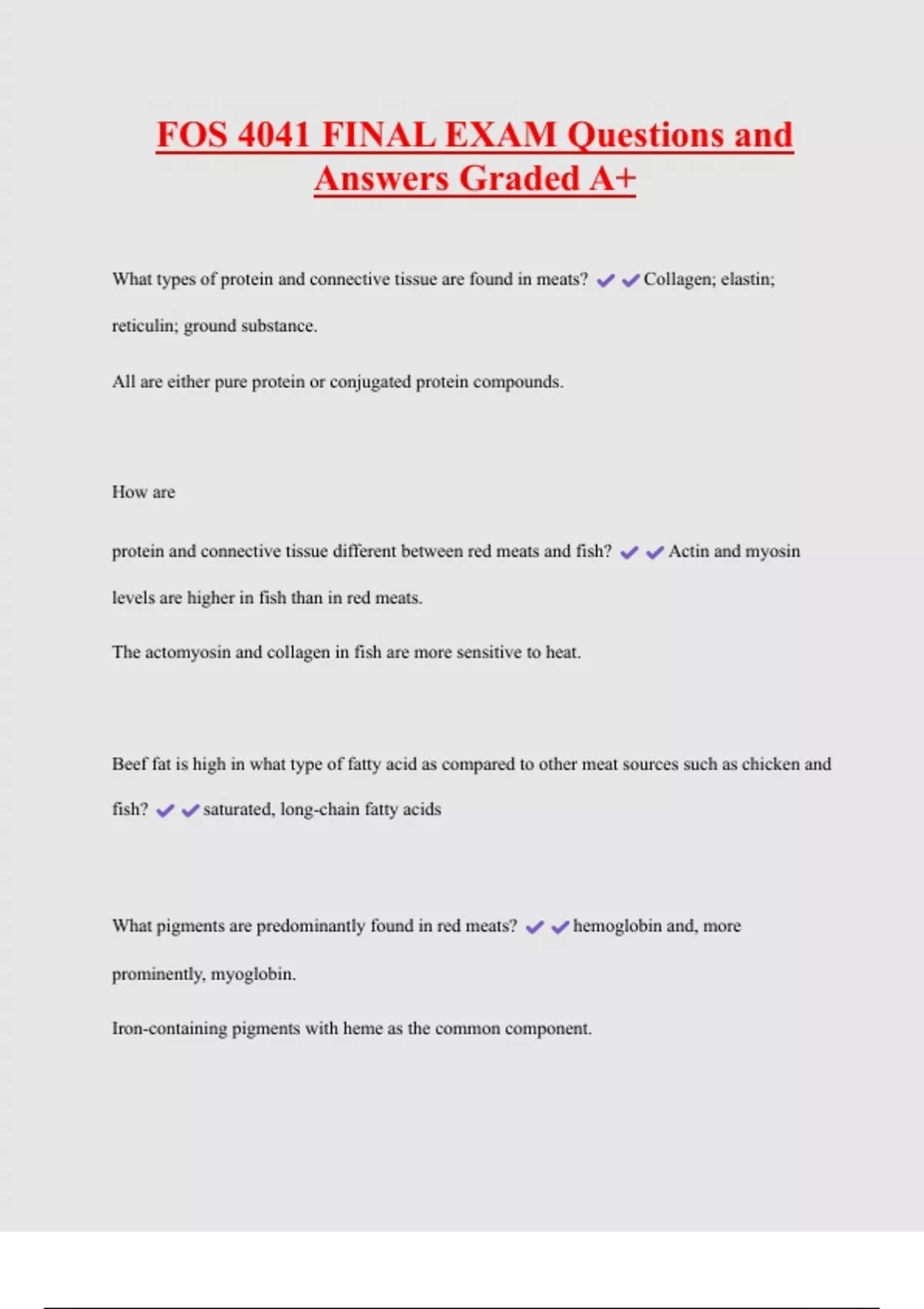 What types of protein and connective tissue are found in meats? Collagen; elastin;