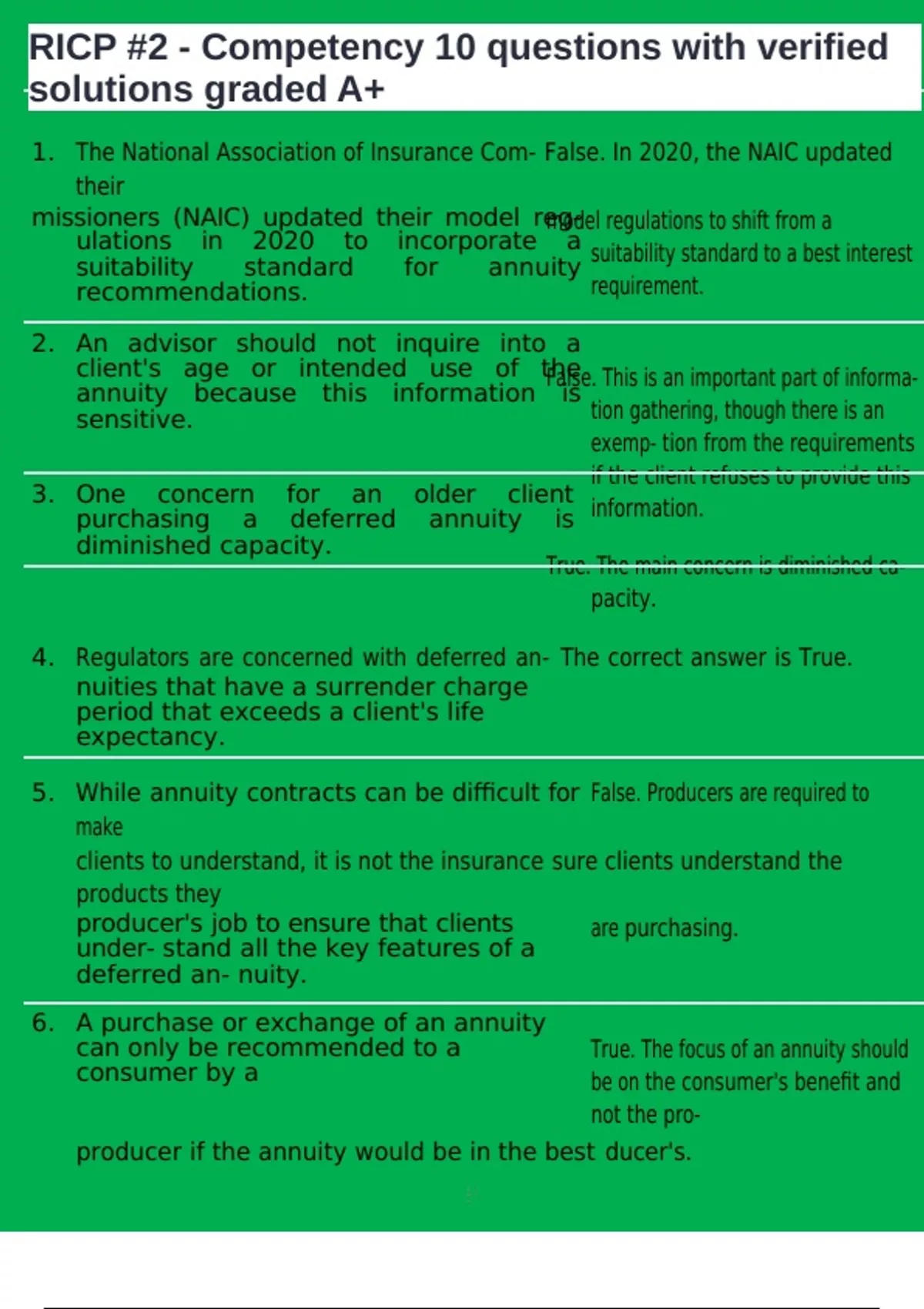 RICP #2 - Competency 10 questions with verified solutions graded A+