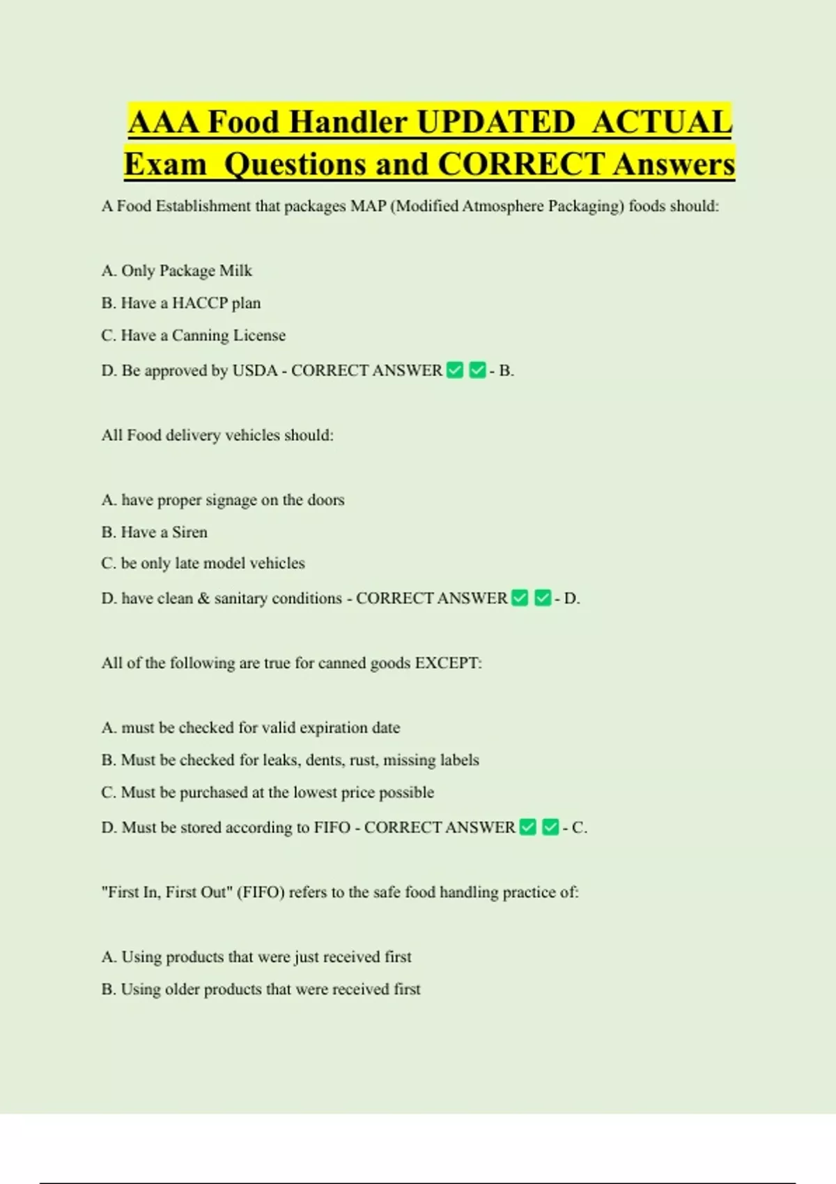 D. Using products that are expired - CORRECT ANSWER - B.