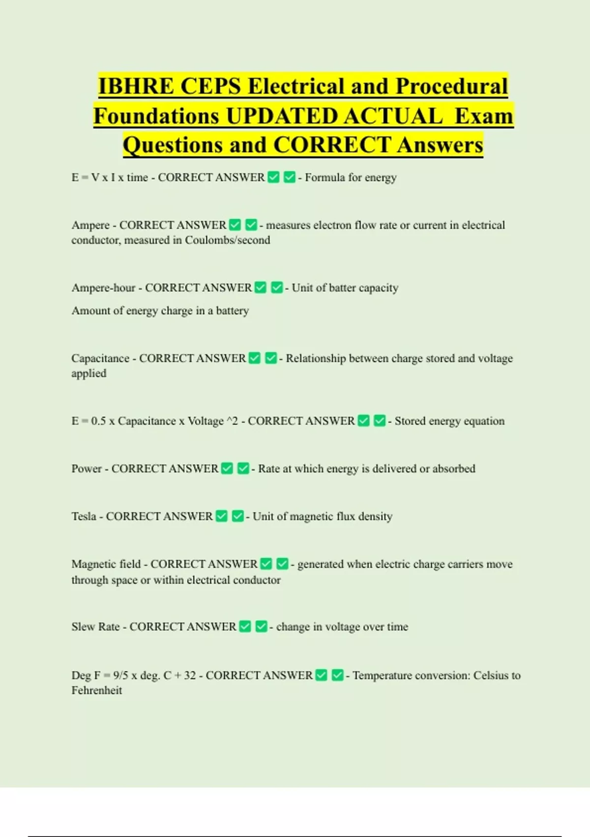 Ampere-hour - CORRECT ANSWER - Unit of batter capacity