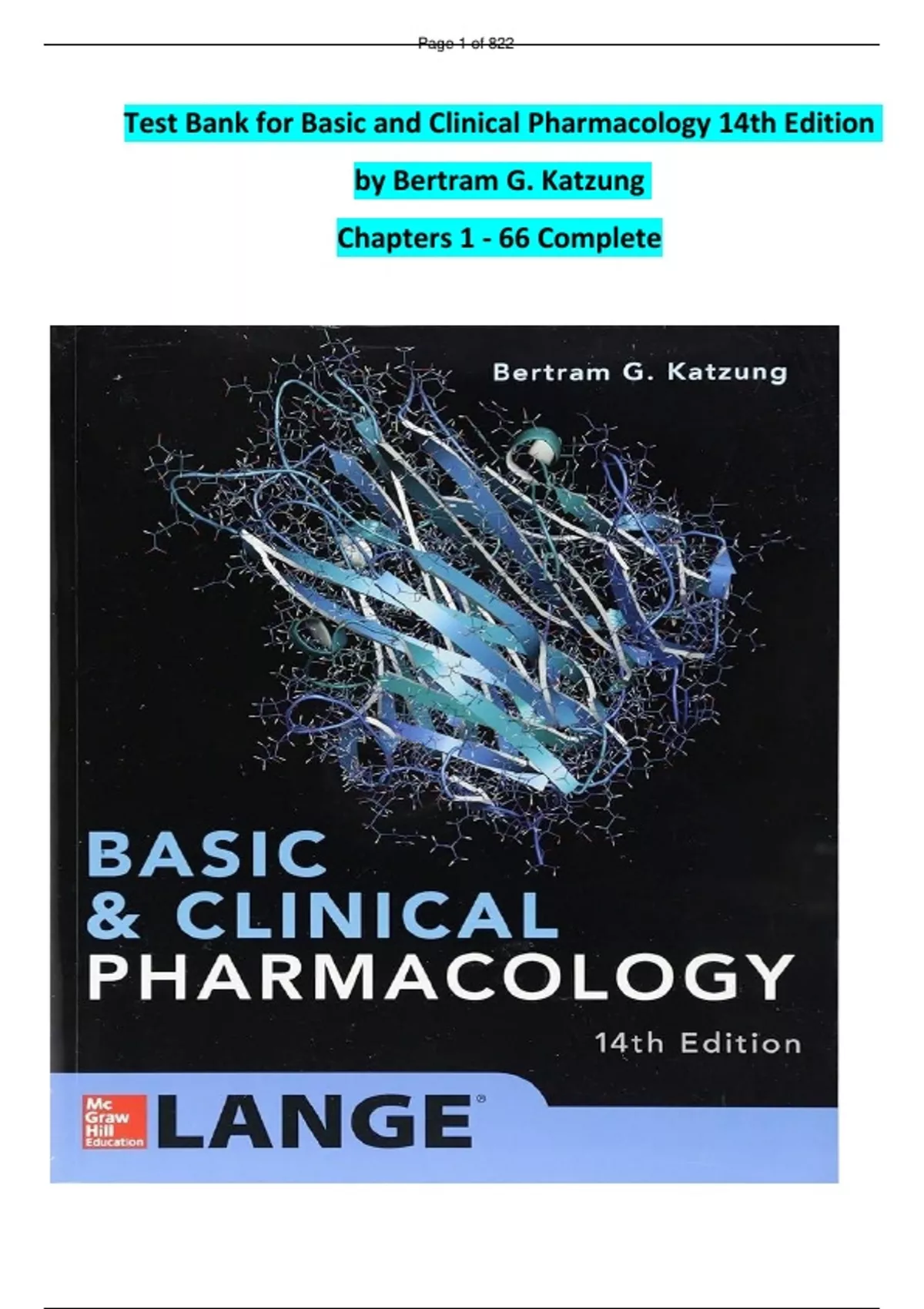 Test Bank for Basic and Clinical Pharmacology 14th Edition