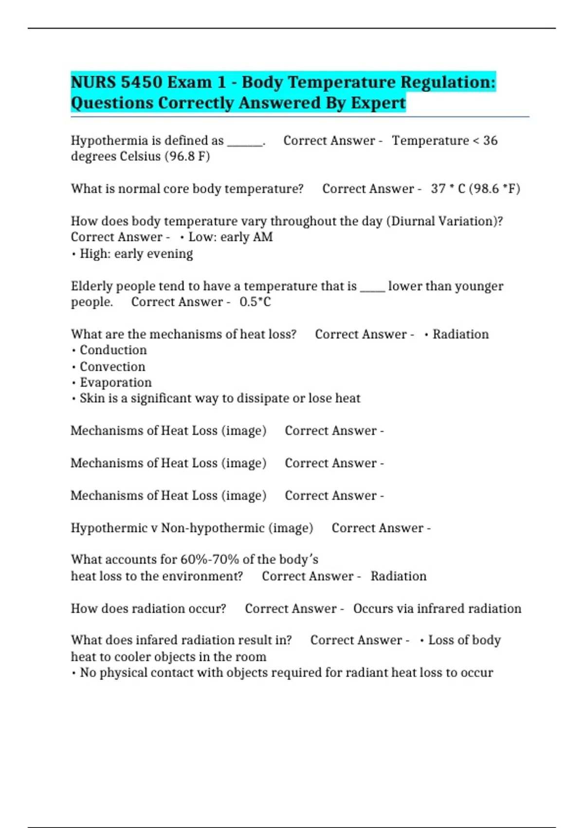 Mechanisms of Heat Loss (image) Correct Answer -