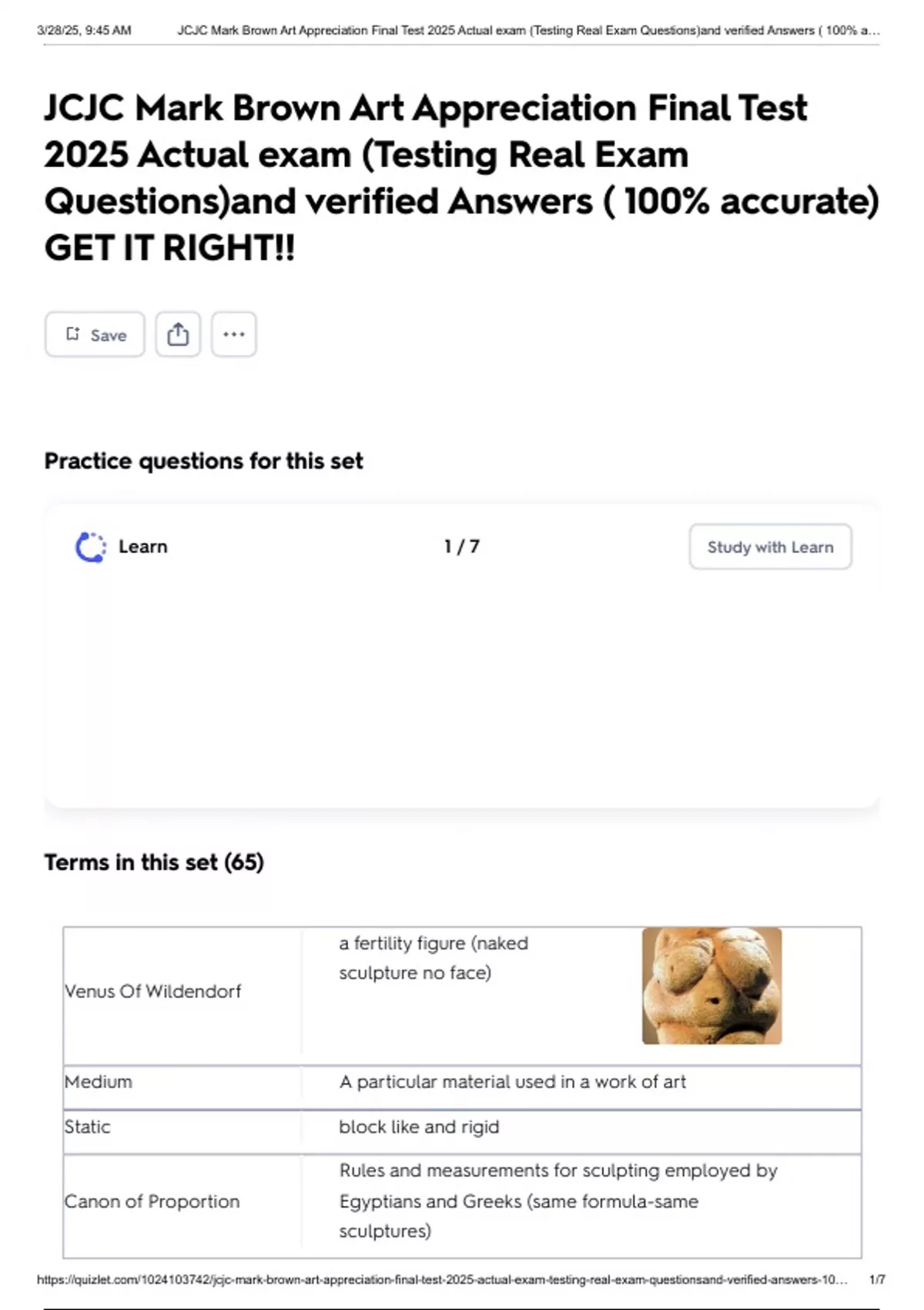 , 3/28/25, 9:45 AM JCJC Mark Brown Art Appreciation Final Test 2025 Actual exam (Testing Real Exam Questions)and verified Answers ( 100% a…