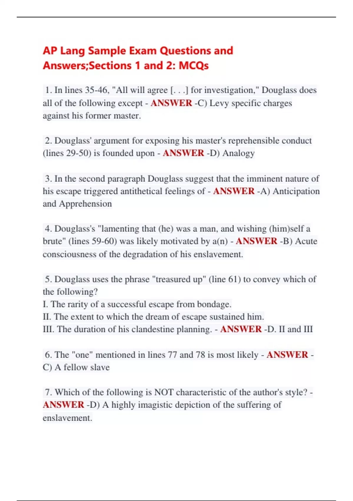 1. In lines 35-46, "All will agree [. . .] for investigation," Douglass does