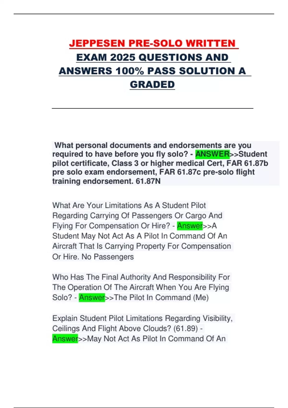 required to have before you fly solo? - ANSWER>>Student