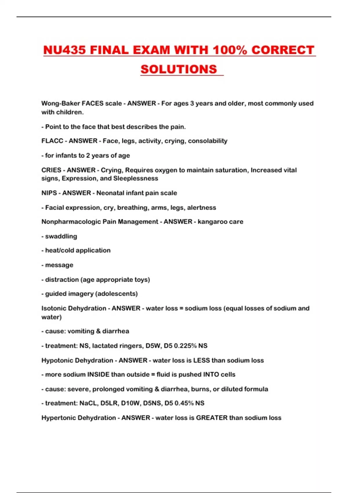 NU435 FINAL EXAM WITH 100% CORRECT SOLUTIONS ...