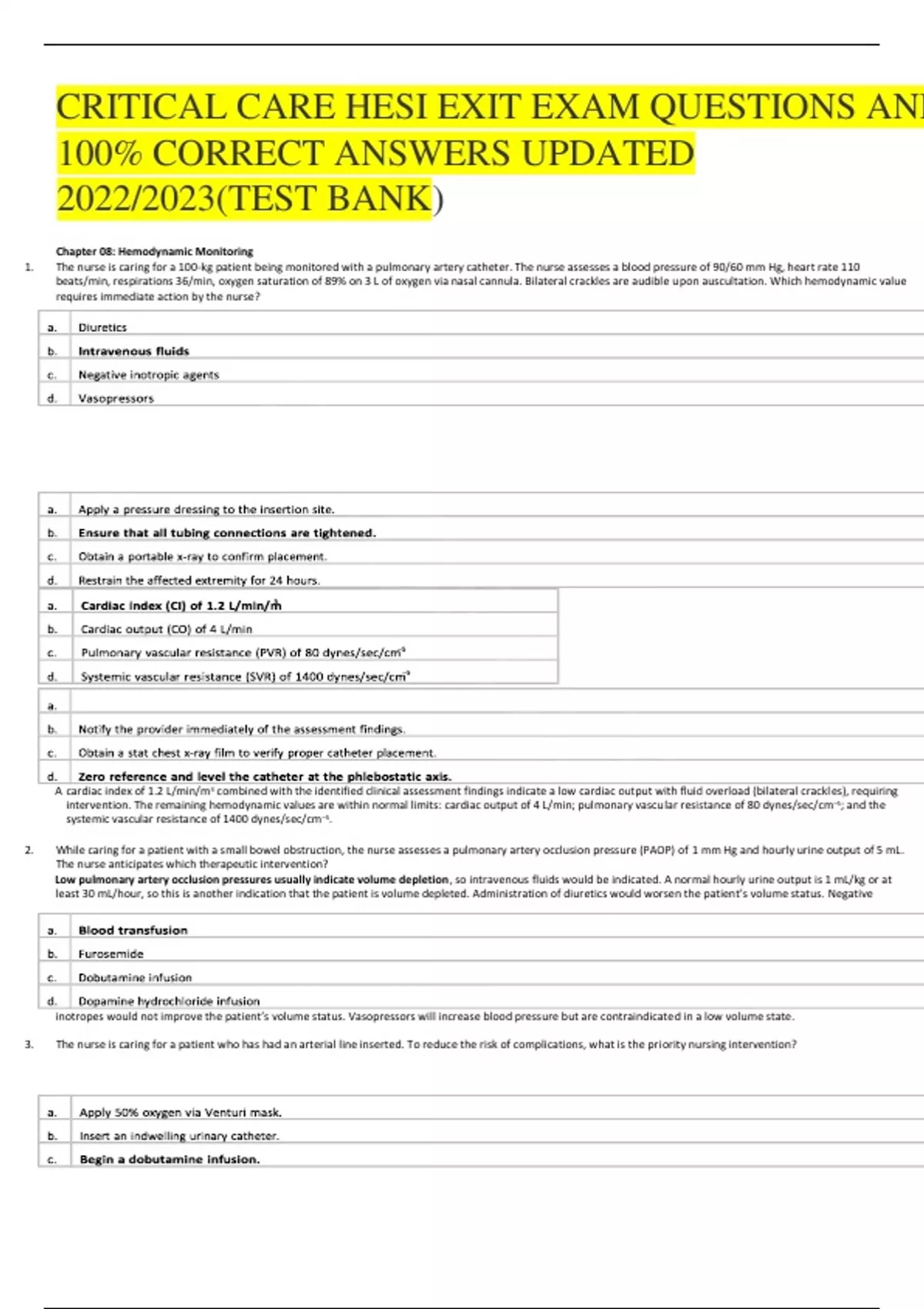 TEST BANK FOR CRITICAL CARE HESI EXIT EXAM QUESTIONS AND 100% CORRECT ANSWERS UPDATED 2024/2025 VERSION COMPLETE GUIDE A+