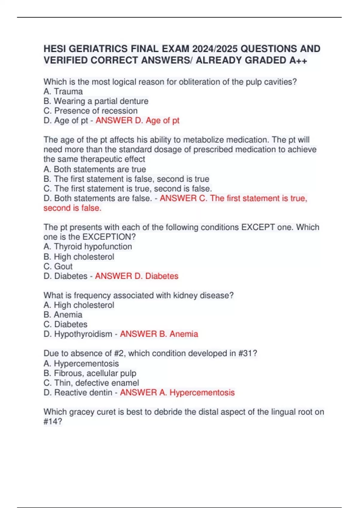 HESI GERIATRICS FINAL EXAM 2024/2025 QUESTIONS AND