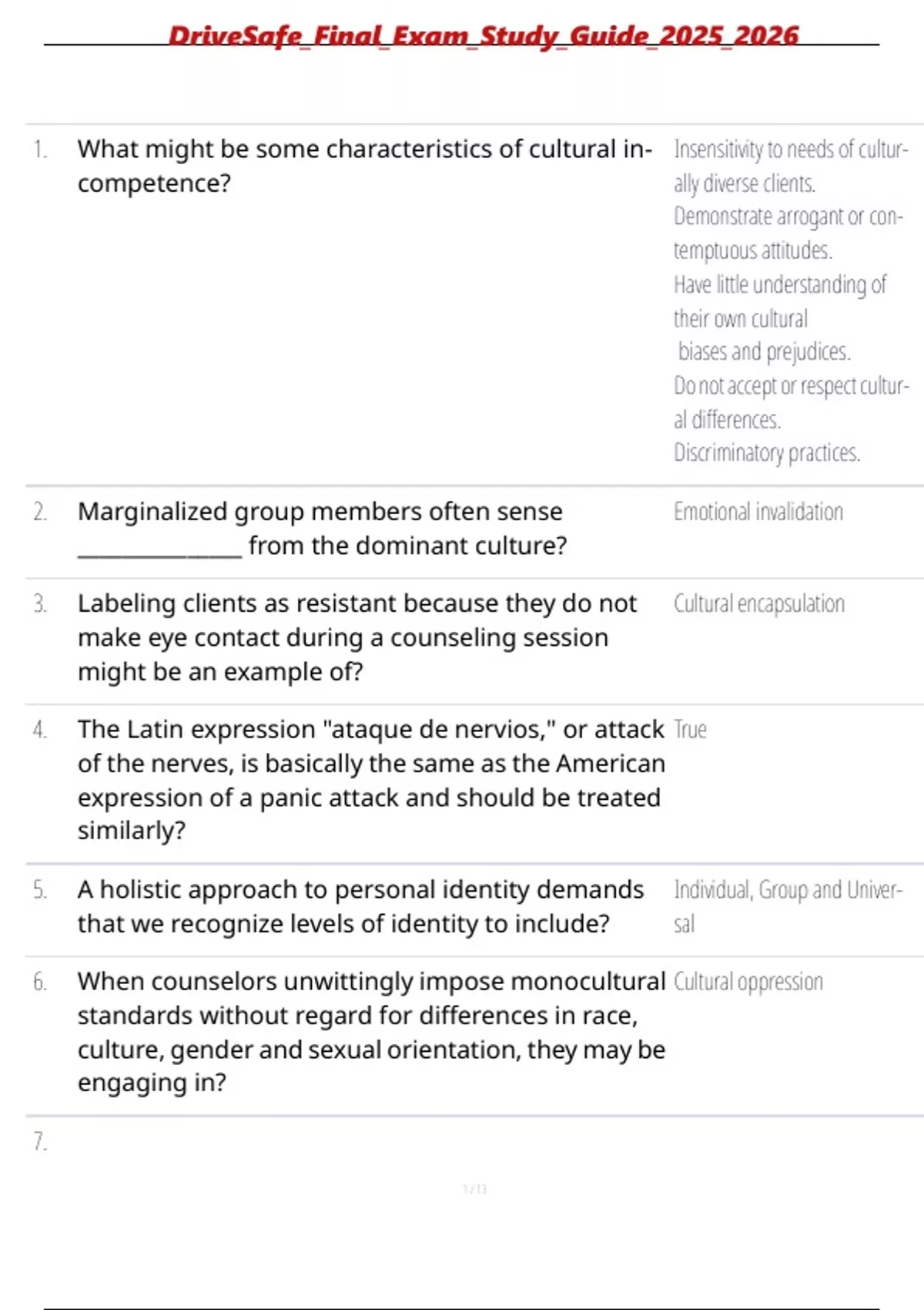 1. What might be some characteristics of cultural in- Insensitivity to needs of cultur-