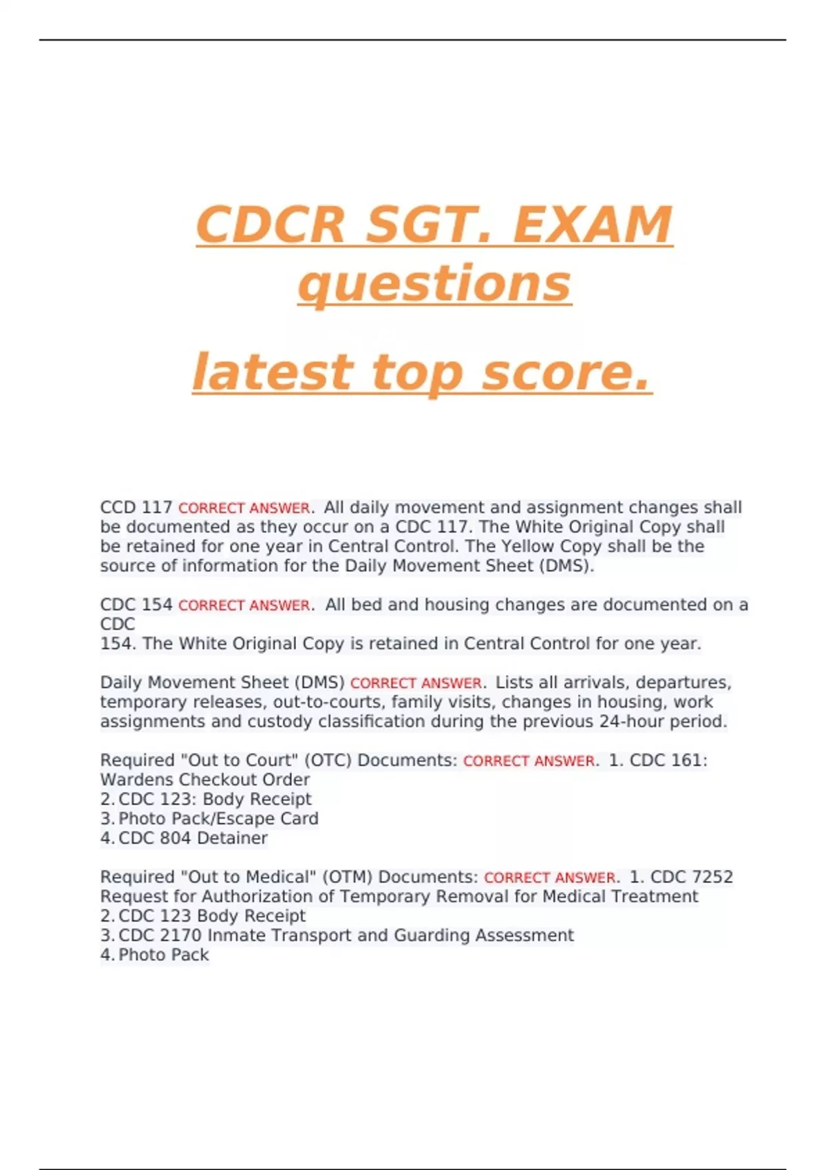 Required "Out to Court" (OTC) Documents: CORRECT ANSWER. 1. CDC 161: