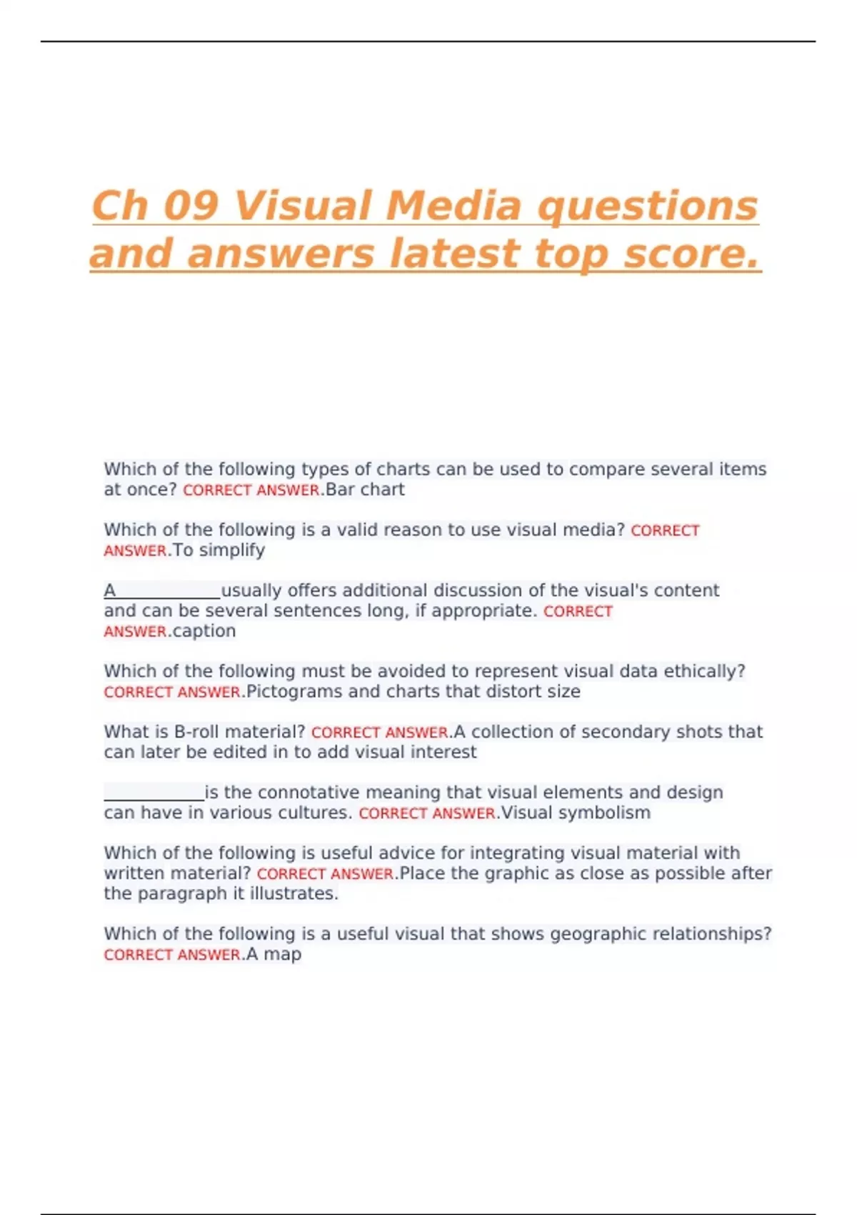 Which of the following is a valid reason to use visual media? CORRECT