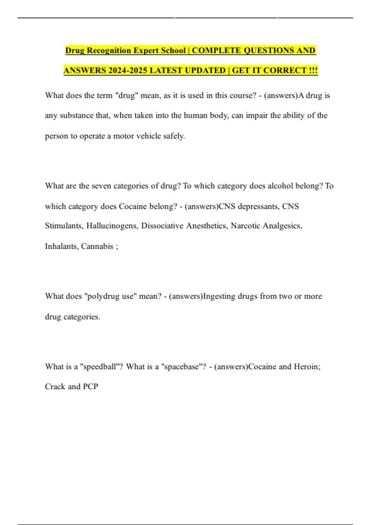 Drug Recognition Expert School | COMPLETE QUESTIONS AND