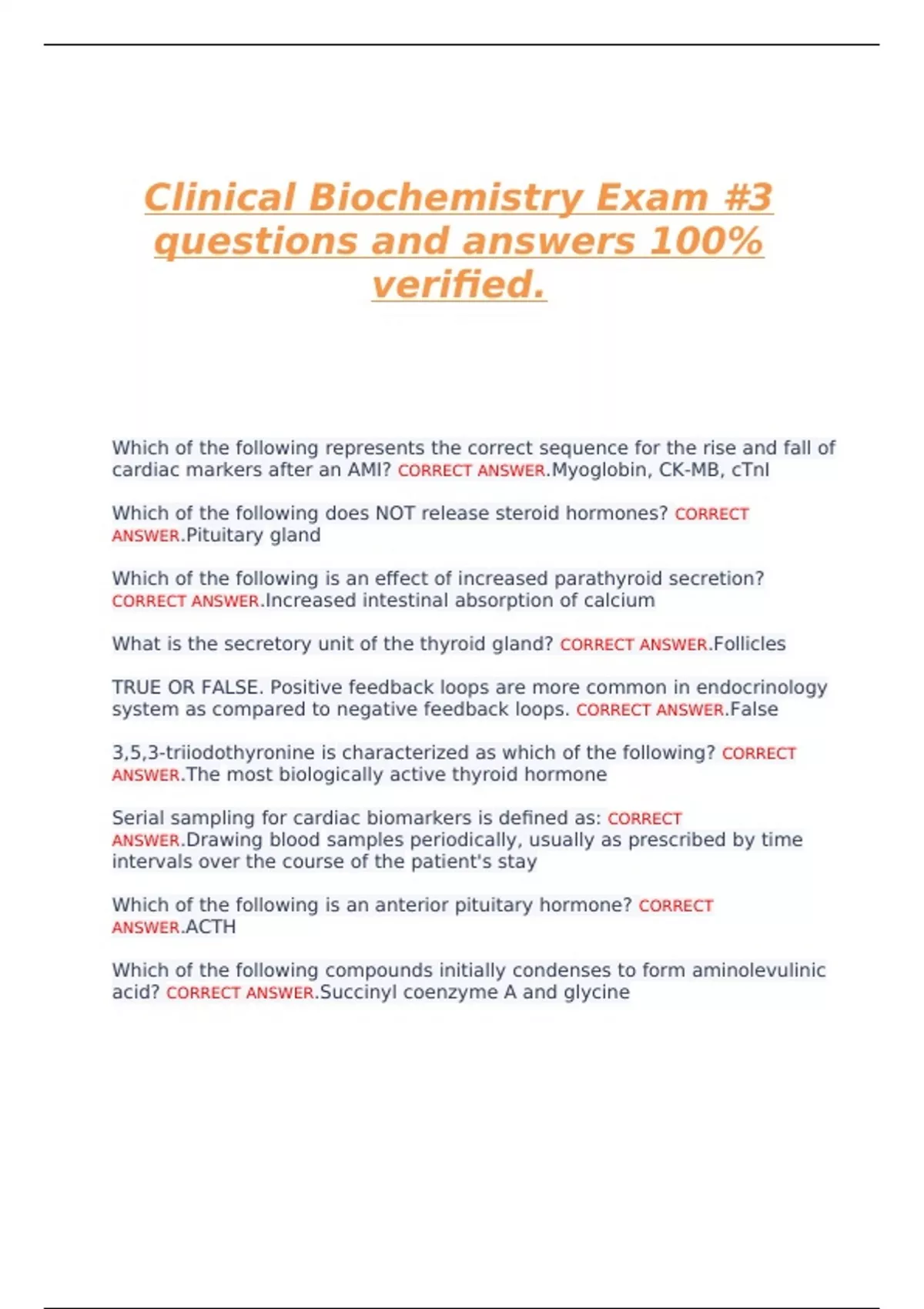 Clinical Biochemistry Exam #3 questions and answers 100% verified.