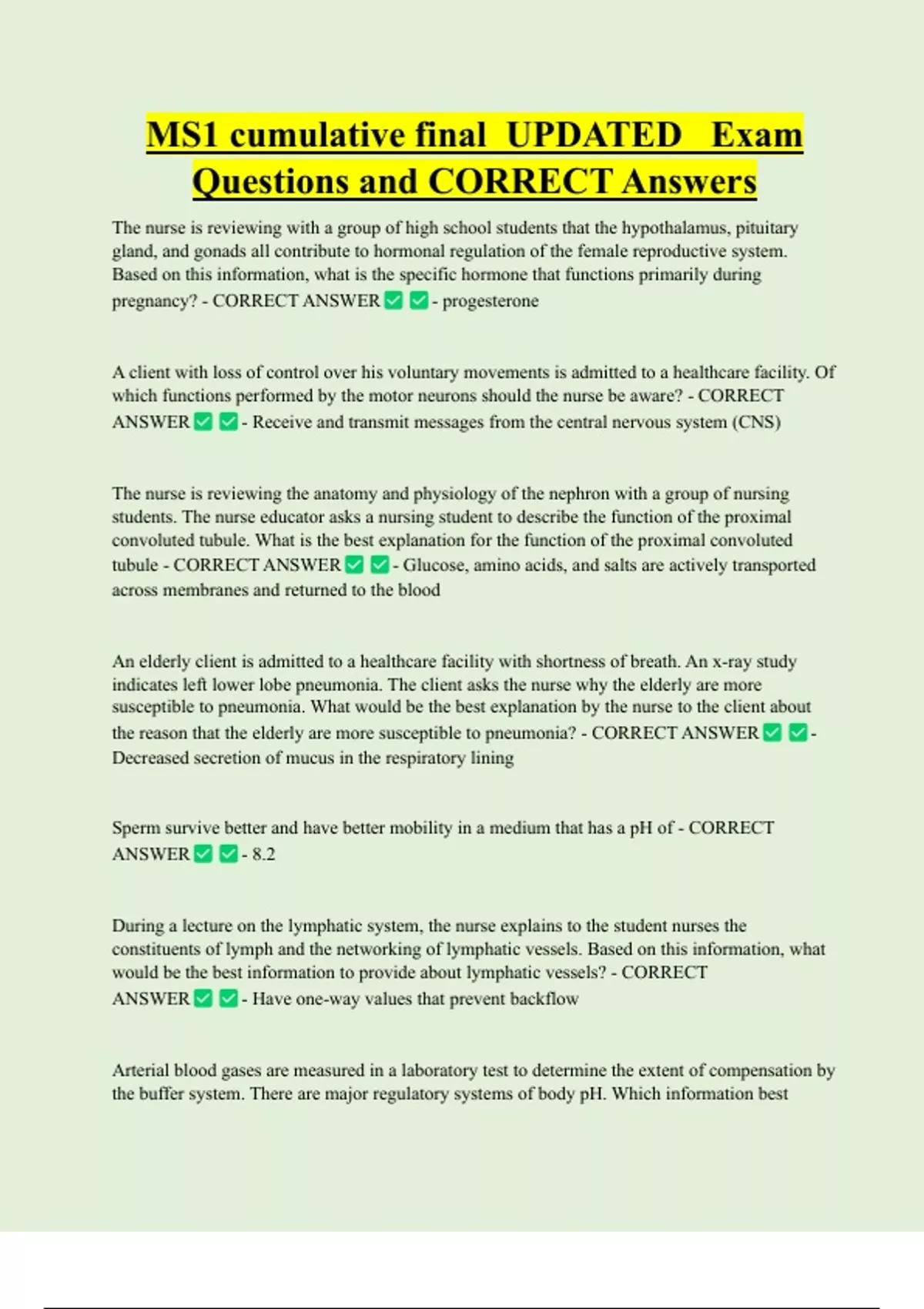 MS1 cumulative final UPDATED Exam Questions and CORRECT Answers