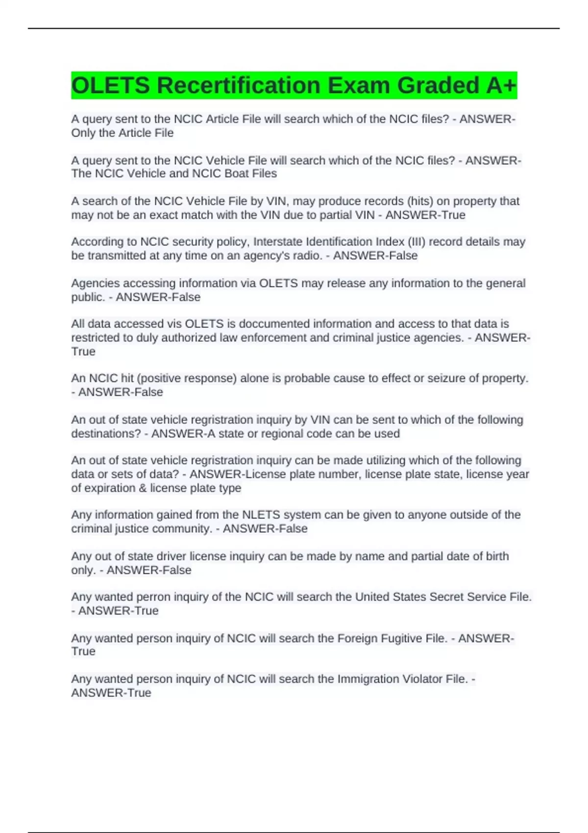 OLETS Recertification Exam Graded A+