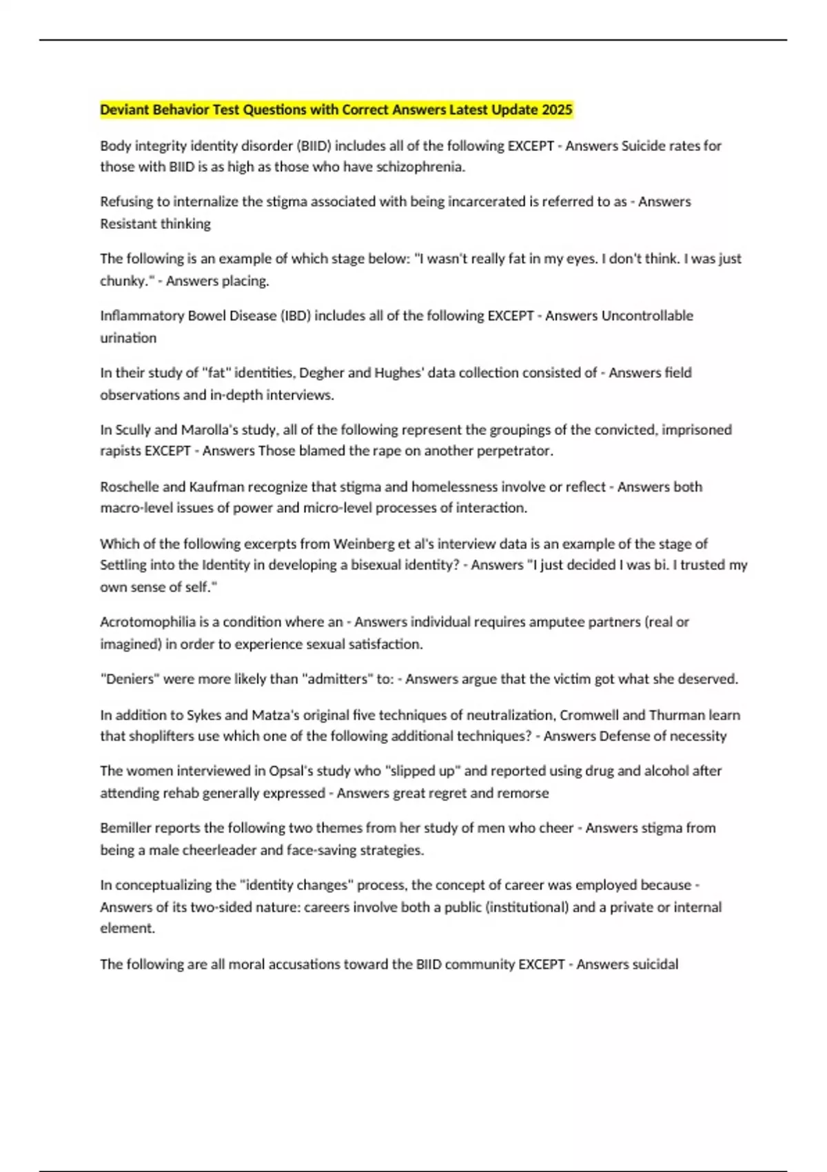 Body integrity identity disorder (BIID) includes all of the following EXCEPT - Answers Suicide rates for