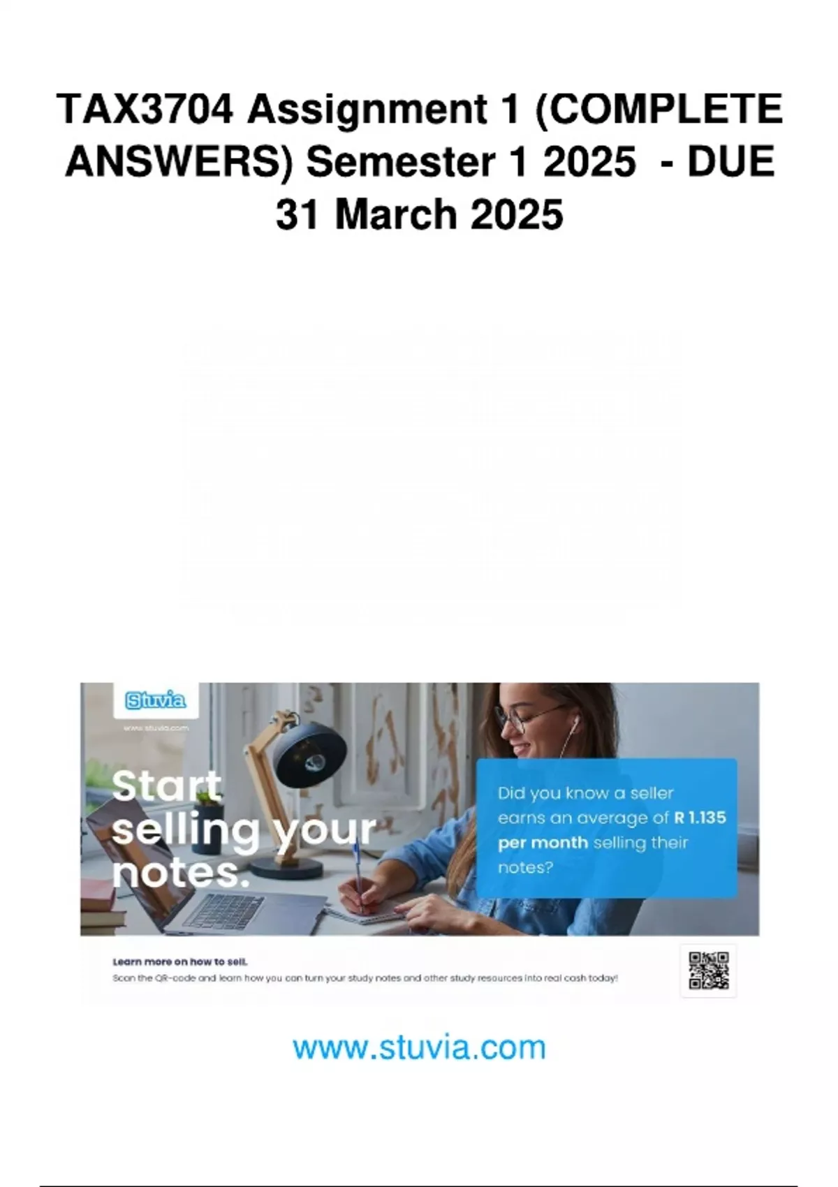 TAX3704 Assignment 1 (COMPLETE ANSWERS) Semester 1 2025 - DUE 31 March 2025