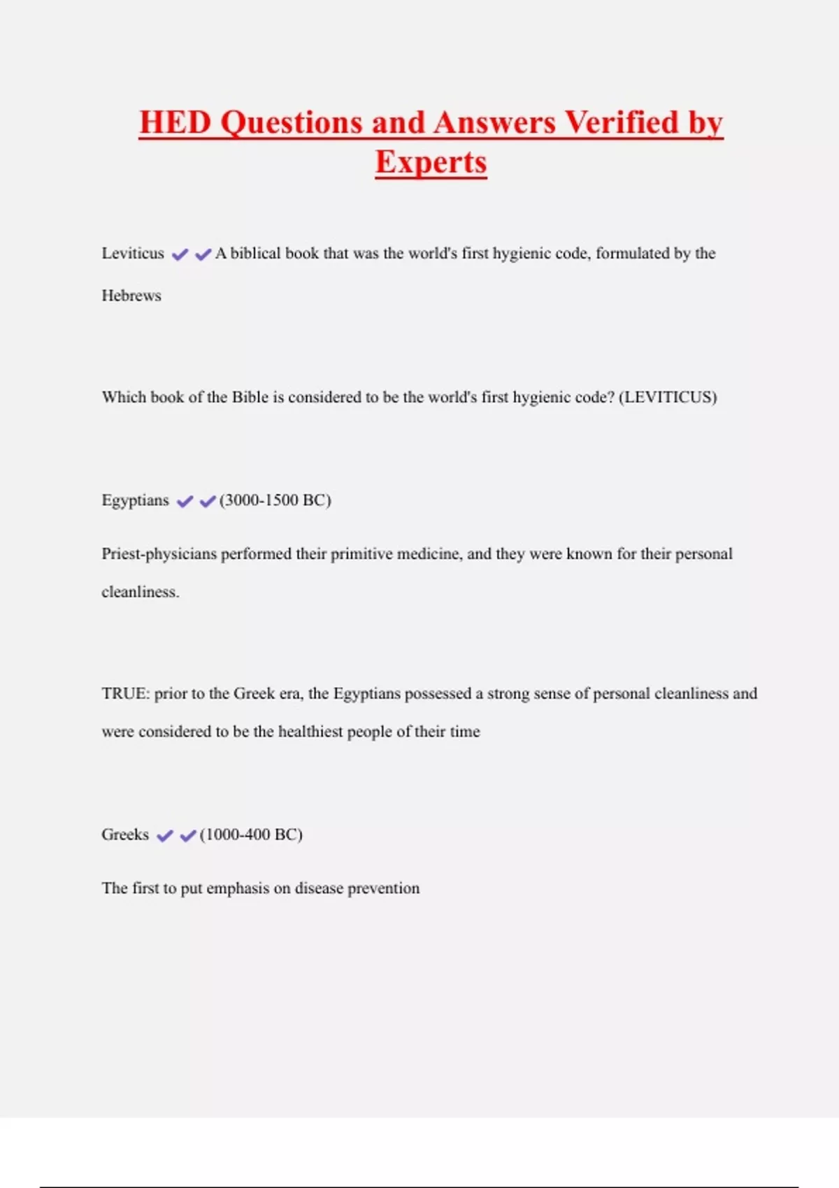 HED Questions and Answers Verified by Experts